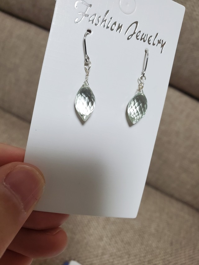 グリーンアメジストのピアスです。 パーツは合金です。 ハンドメイドになります。 珍しいカット石で、とてもきれいです。シンプルに作りました。 よろしくお願いいたします! 定形外郵便 送料無料