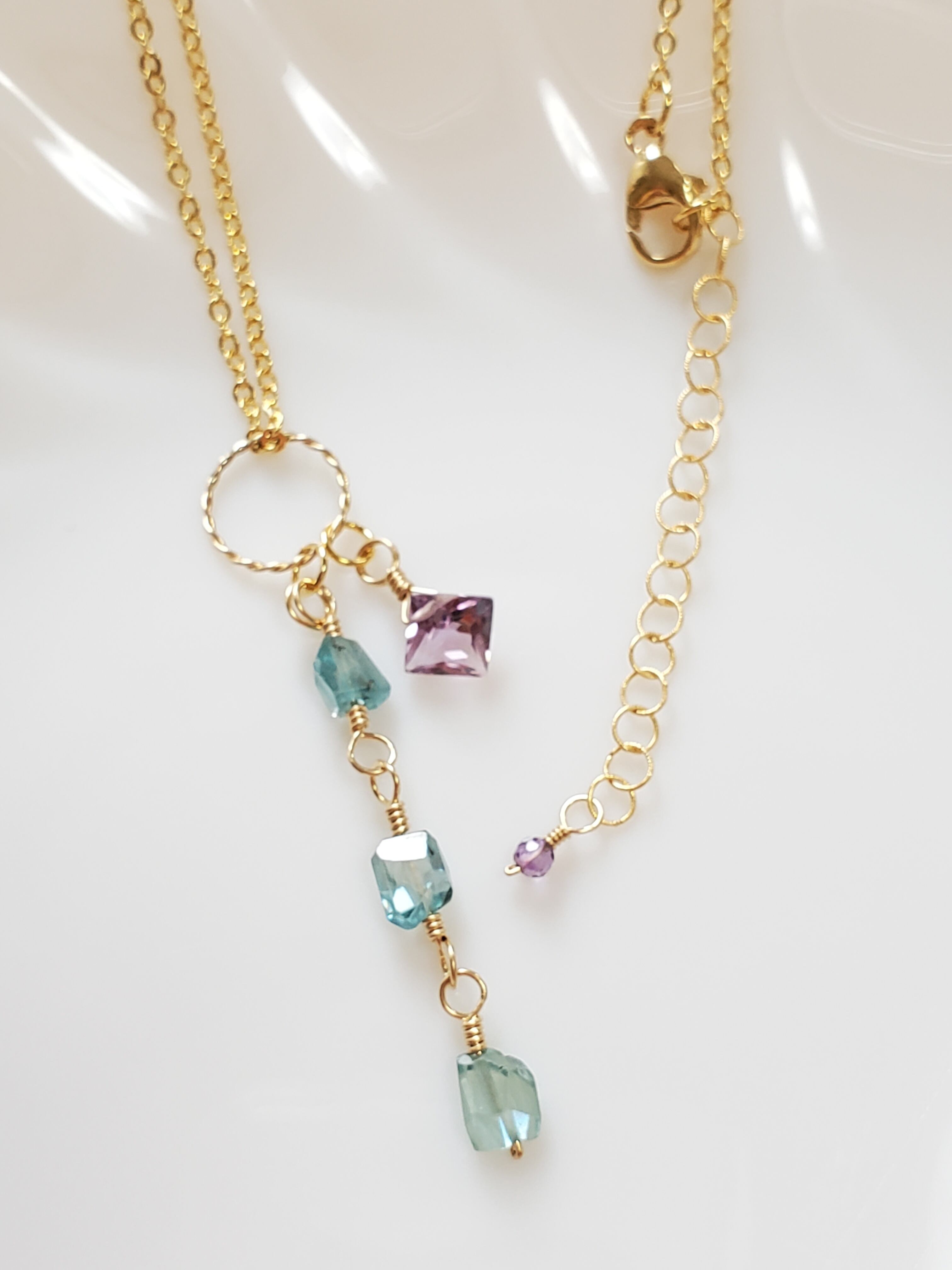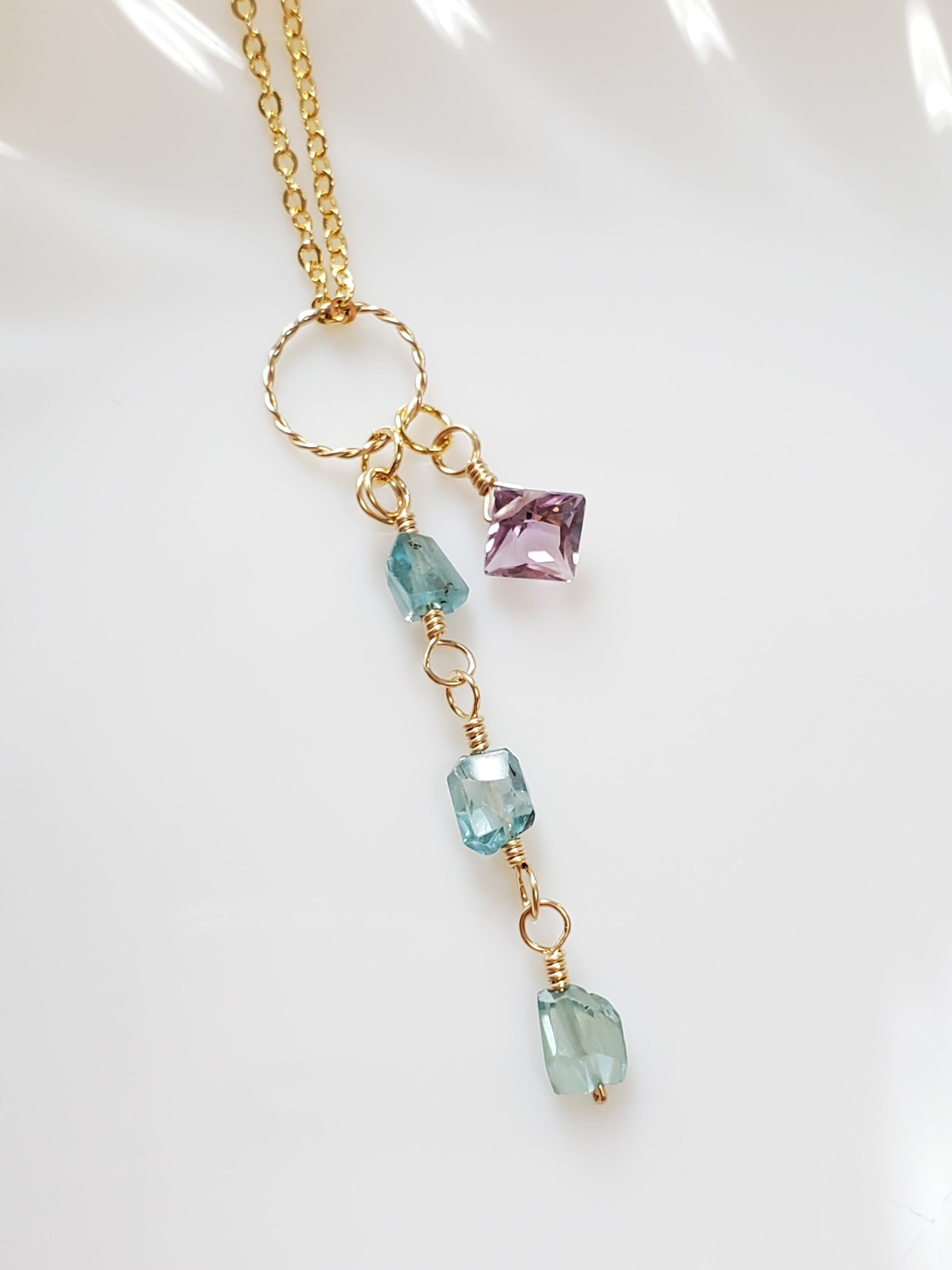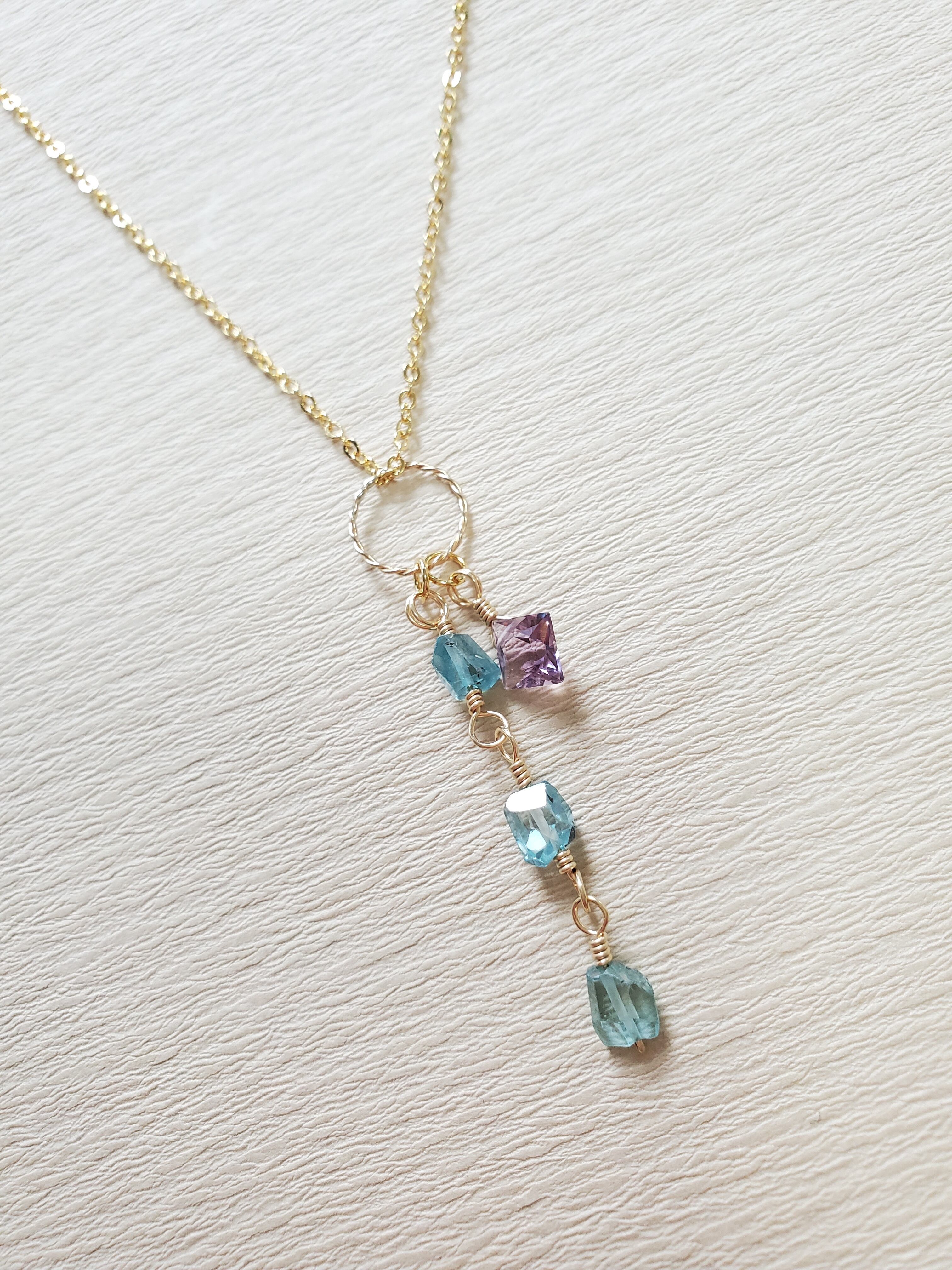 あまり見かけない天然ブルージルコンとシンデレラカットのアメジストを合わせてみました。