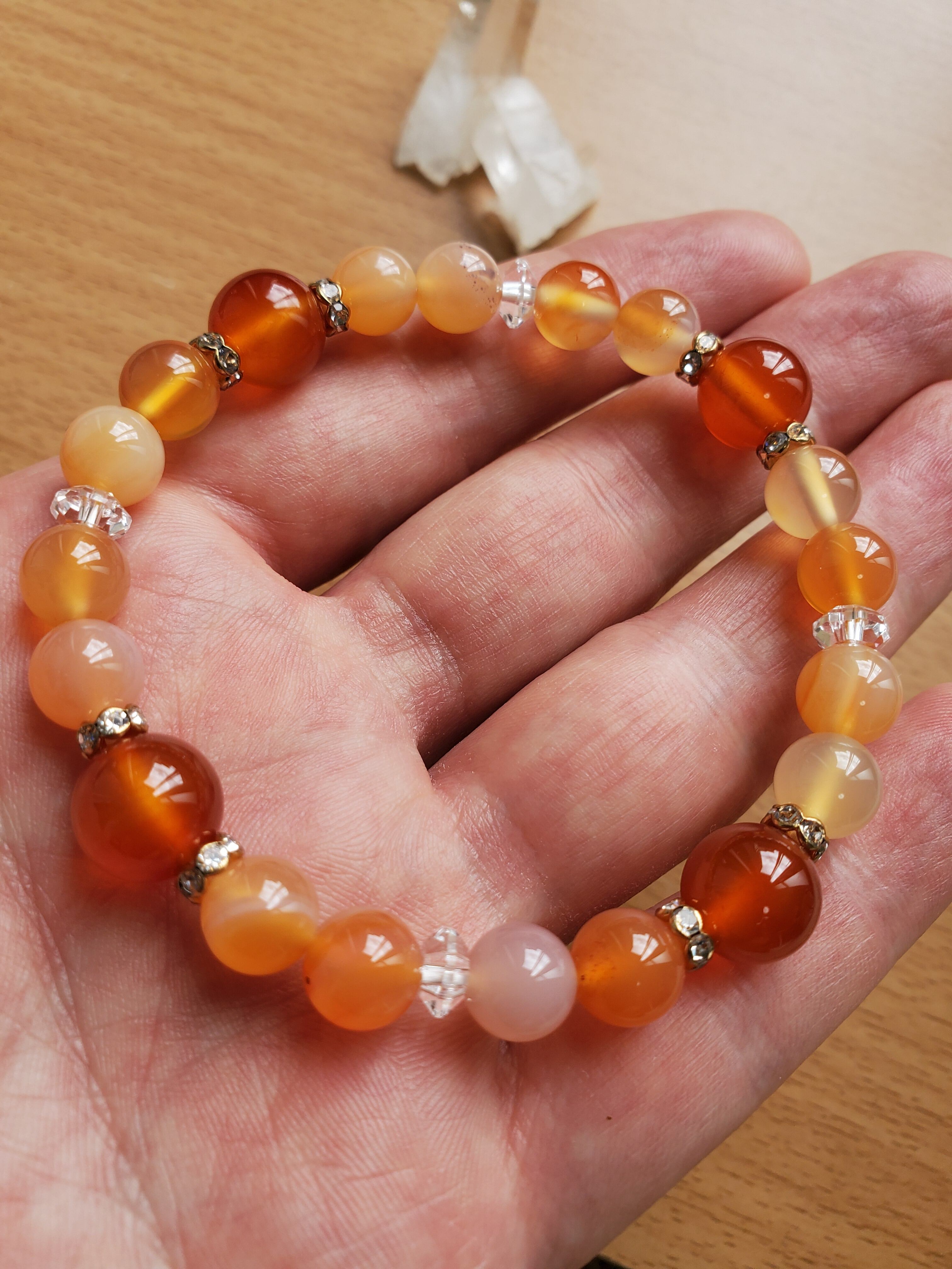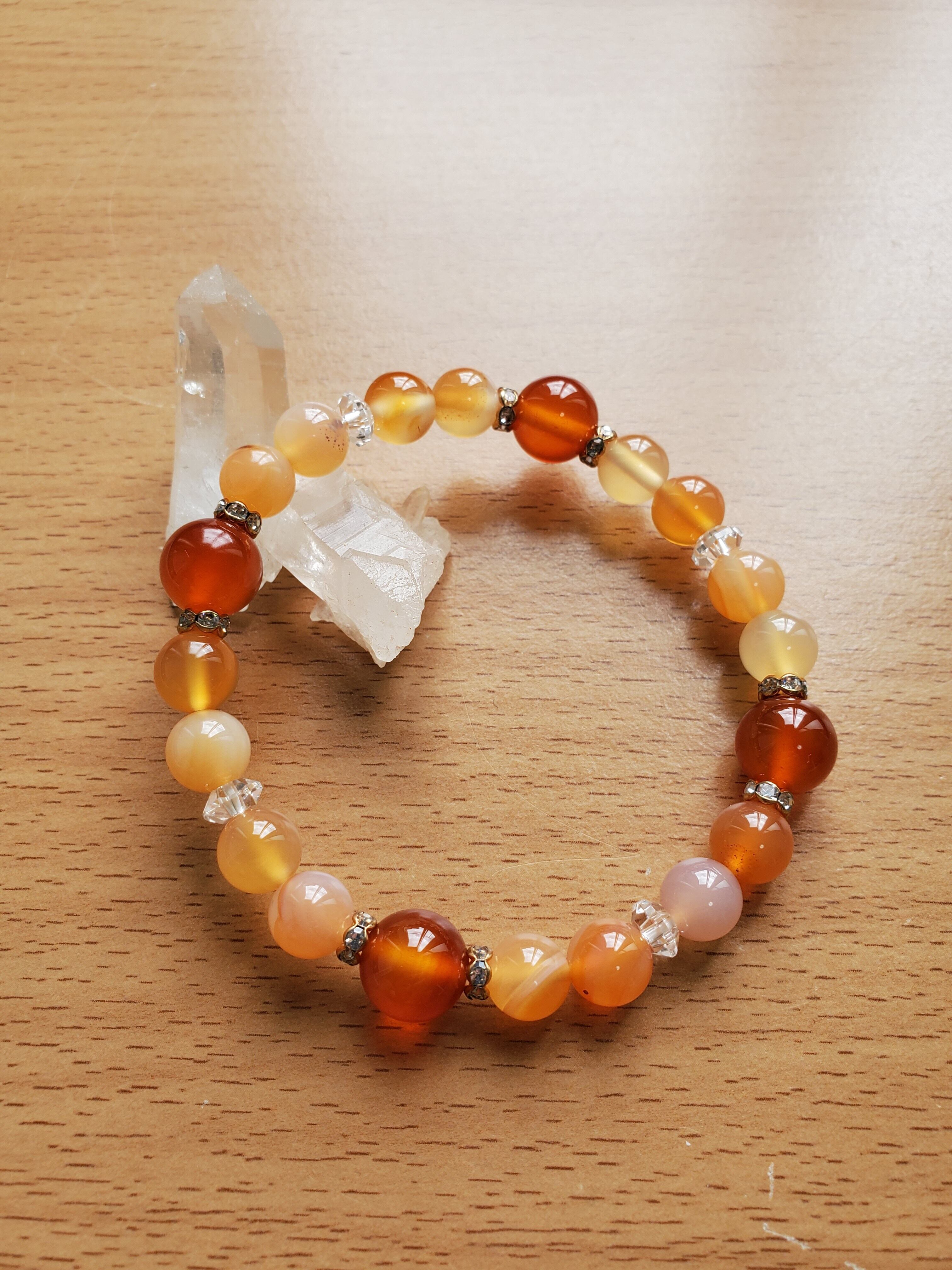 カーネリアンの大人ブレスレットです。 カーネリアン 8ミリ玉 カーネリアン 10ミリ玉 水晶 ボタンカット ロンデル 手首周り 約16.8センチ 大人かわいく作ってみました。 よろしくお願いいたします! 定形外郵便 送料無料