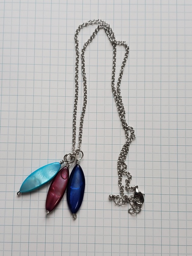 胸元で、ジャラジャラがかわいいネックレスにしてみました。組み合わせは自由にできますし、シェルを1個や2個にしても楽しめます。