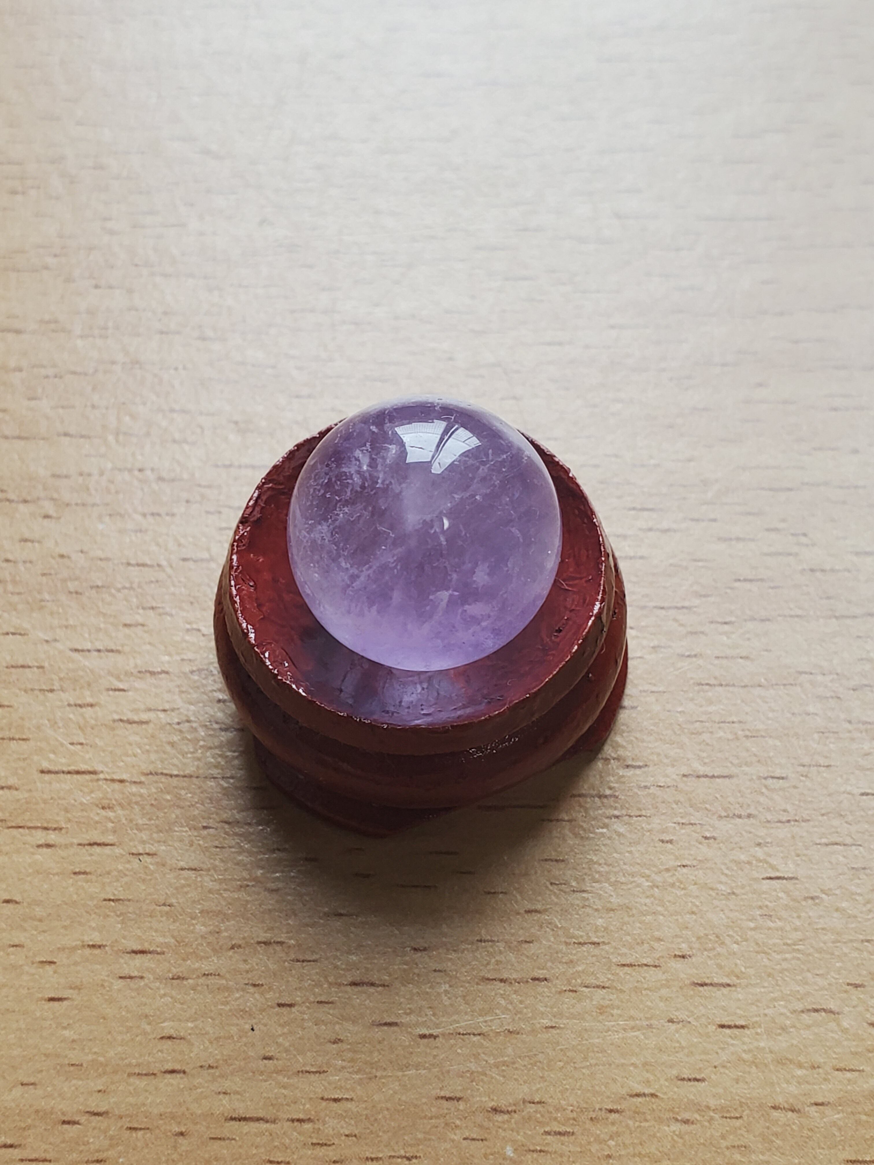 アメジストの丸玉 スフィア 台座付き 天然のアメジストです。 玄関などに、いかがでしょうか? あと、プレゼントにも良いかもです。 石のある生活は良いものですよー。 よろしくお願いいたします。 定形外郵便 送料無料