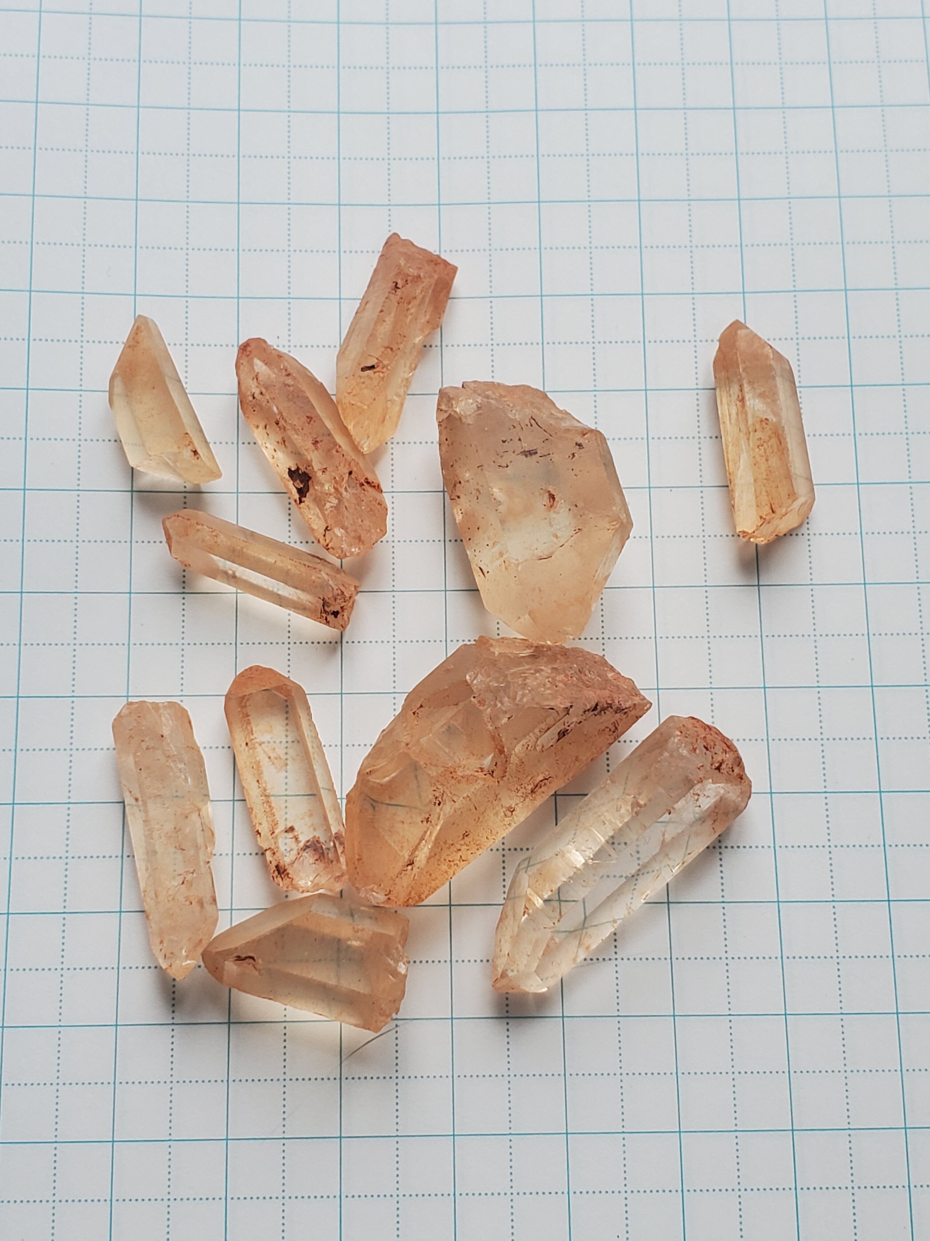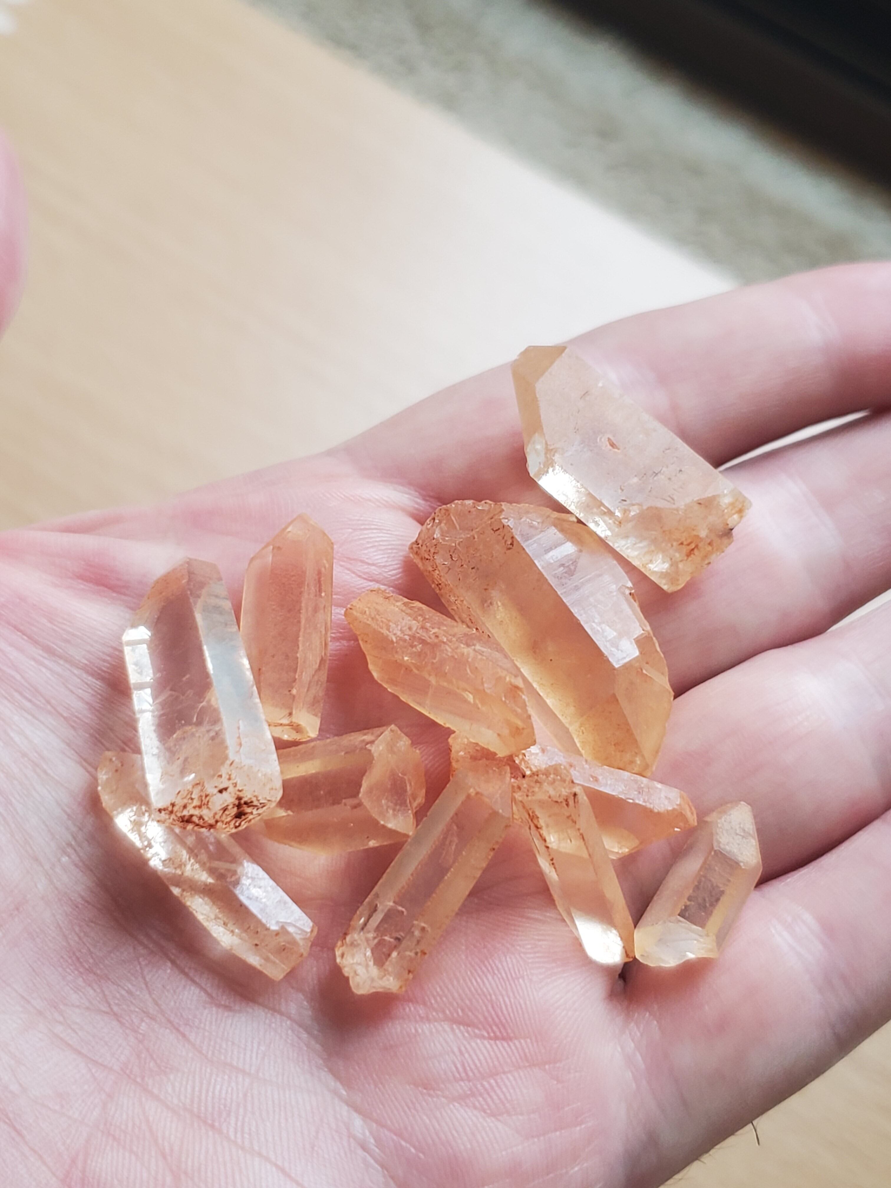 タンジェリンクォーツ 水晶 ポイント 11個 天然の鉄分でオレンジがかったタンジェリンクォーツのポイントです。 そのままディスプレイやコレクション、アクセサリーなどの素材としても、いかがでしょうか? よろしくお願いいたします。 定形外郵便 送料無料