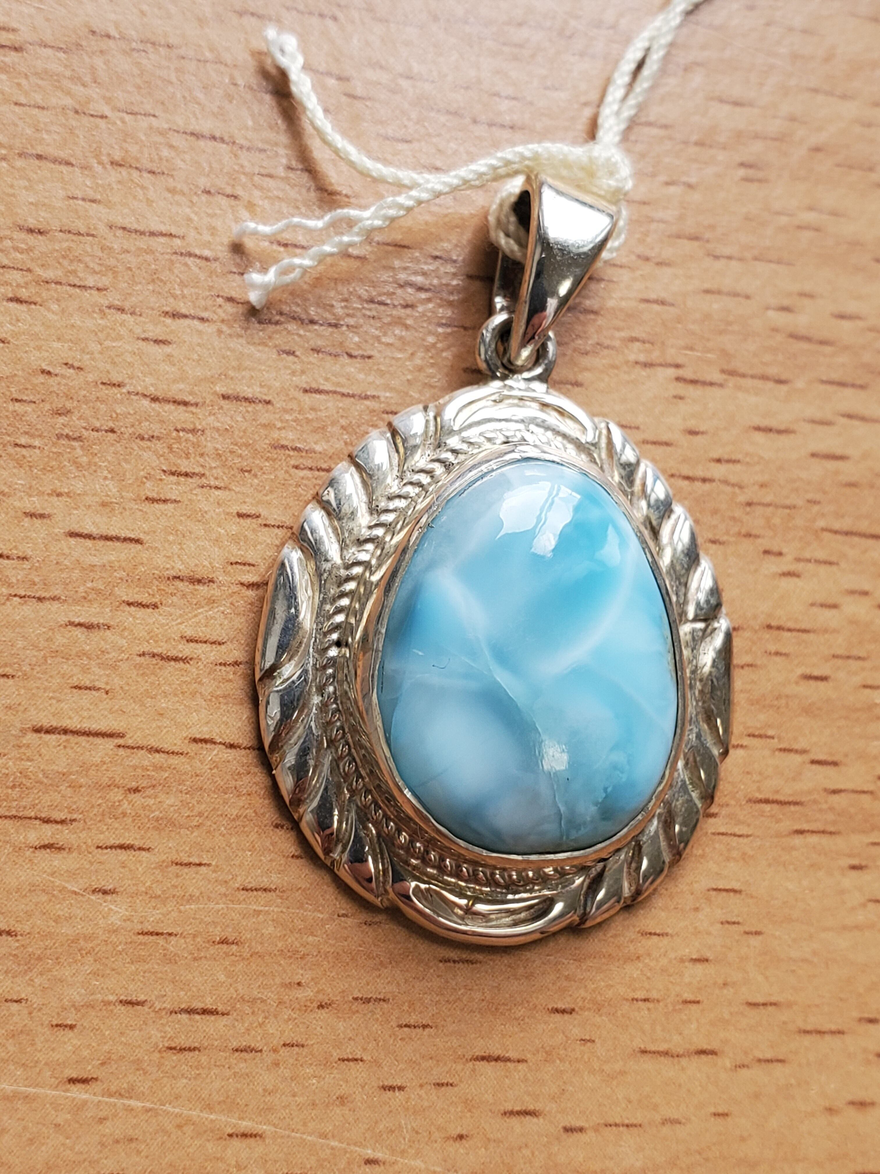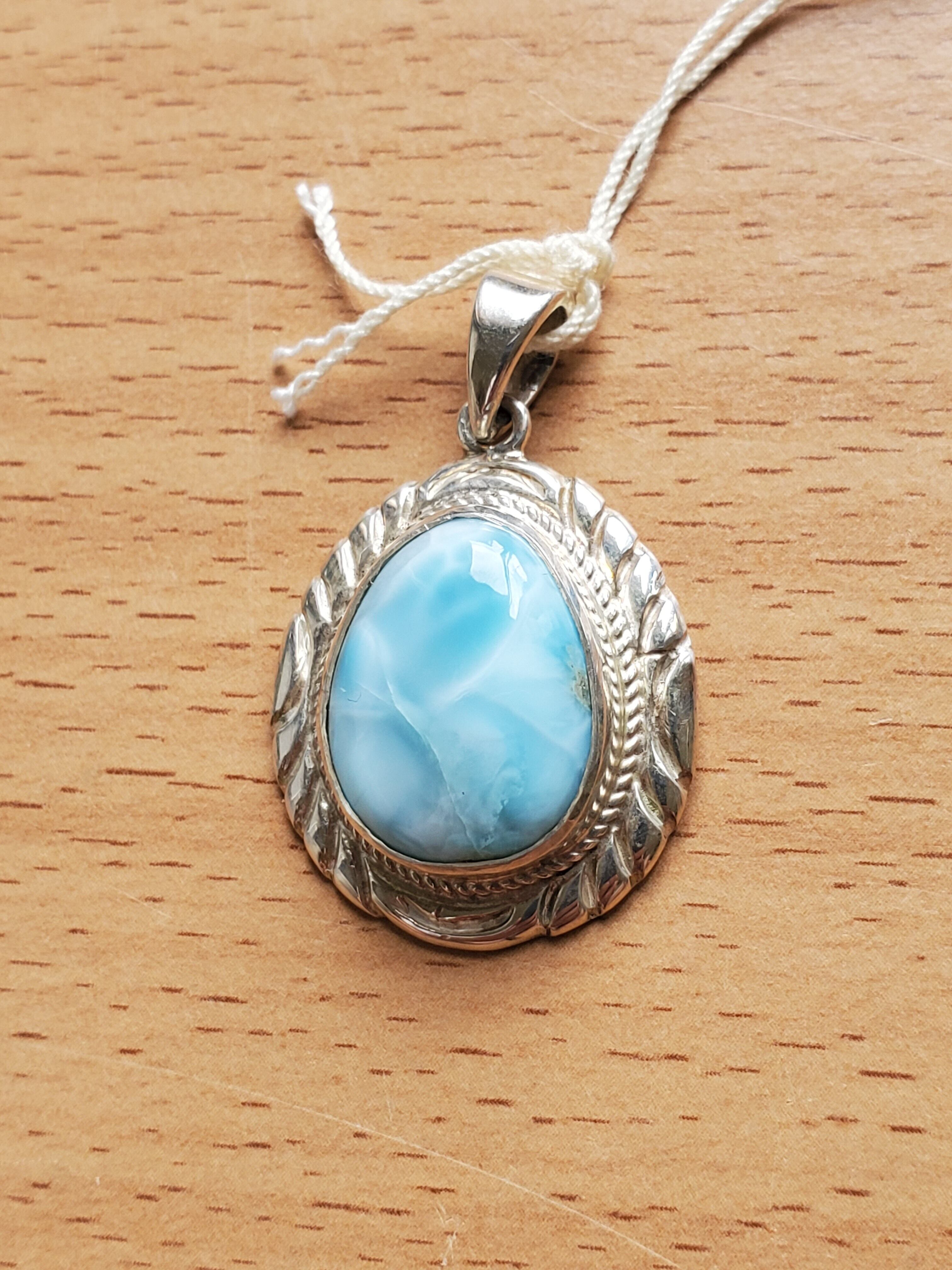 高品質ラリマーの925silverデザインペンダントトップ 送料無料