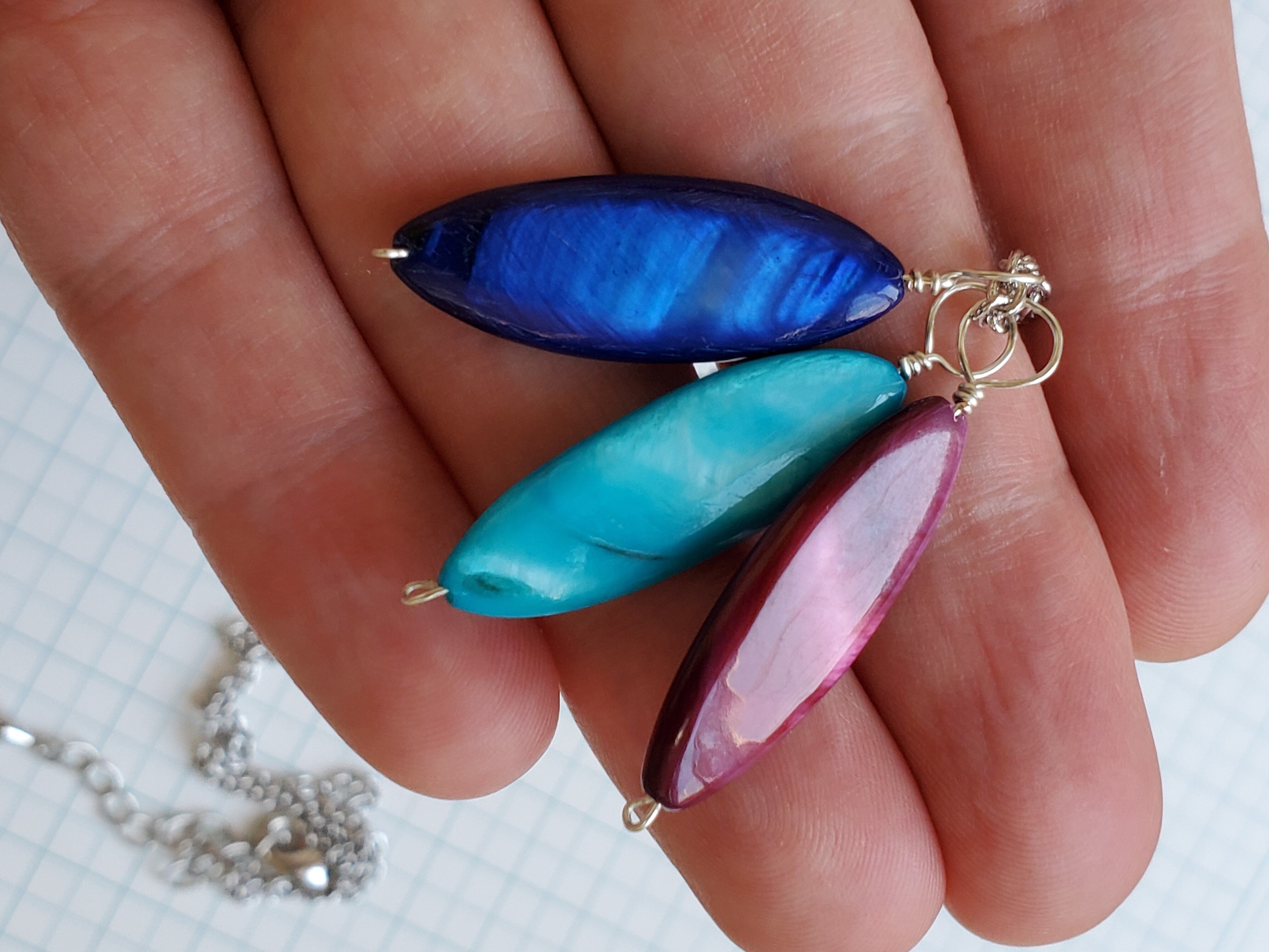 カラーシェル アーティスティックワイヤー チェーンは合金 長さ約50センチ+アジャスター5センチ 3連ネックレス、好評のため、再販です。再作しました。組み合わせや、個数を変えて楽しめます。 よろしくお願いいたします。 定形外郵便 送料無料