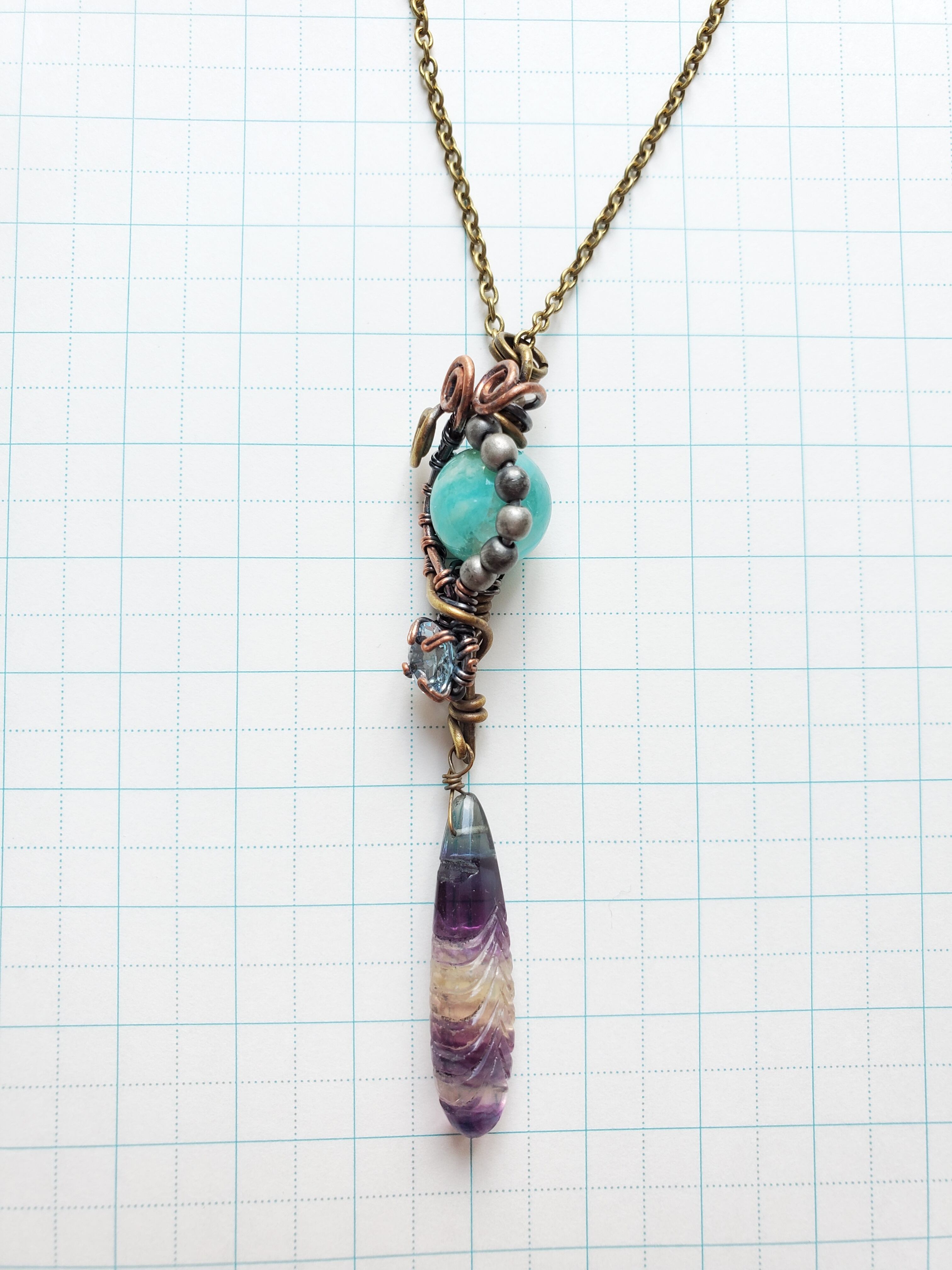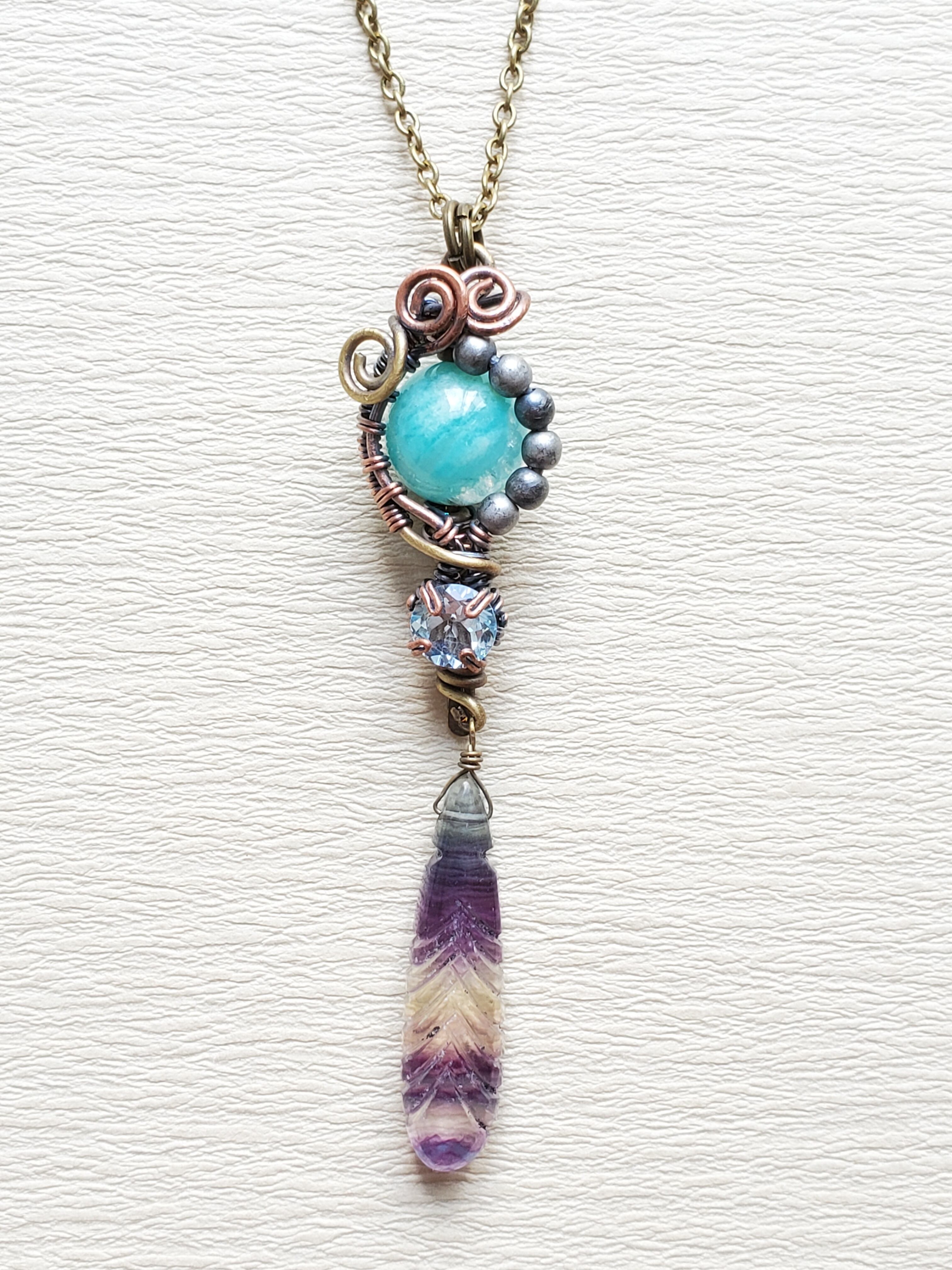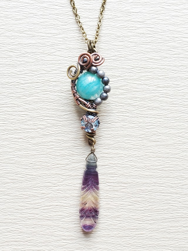 Hanakokko SP アマゾナイトシリカとフローライトのネックレス 送料無料