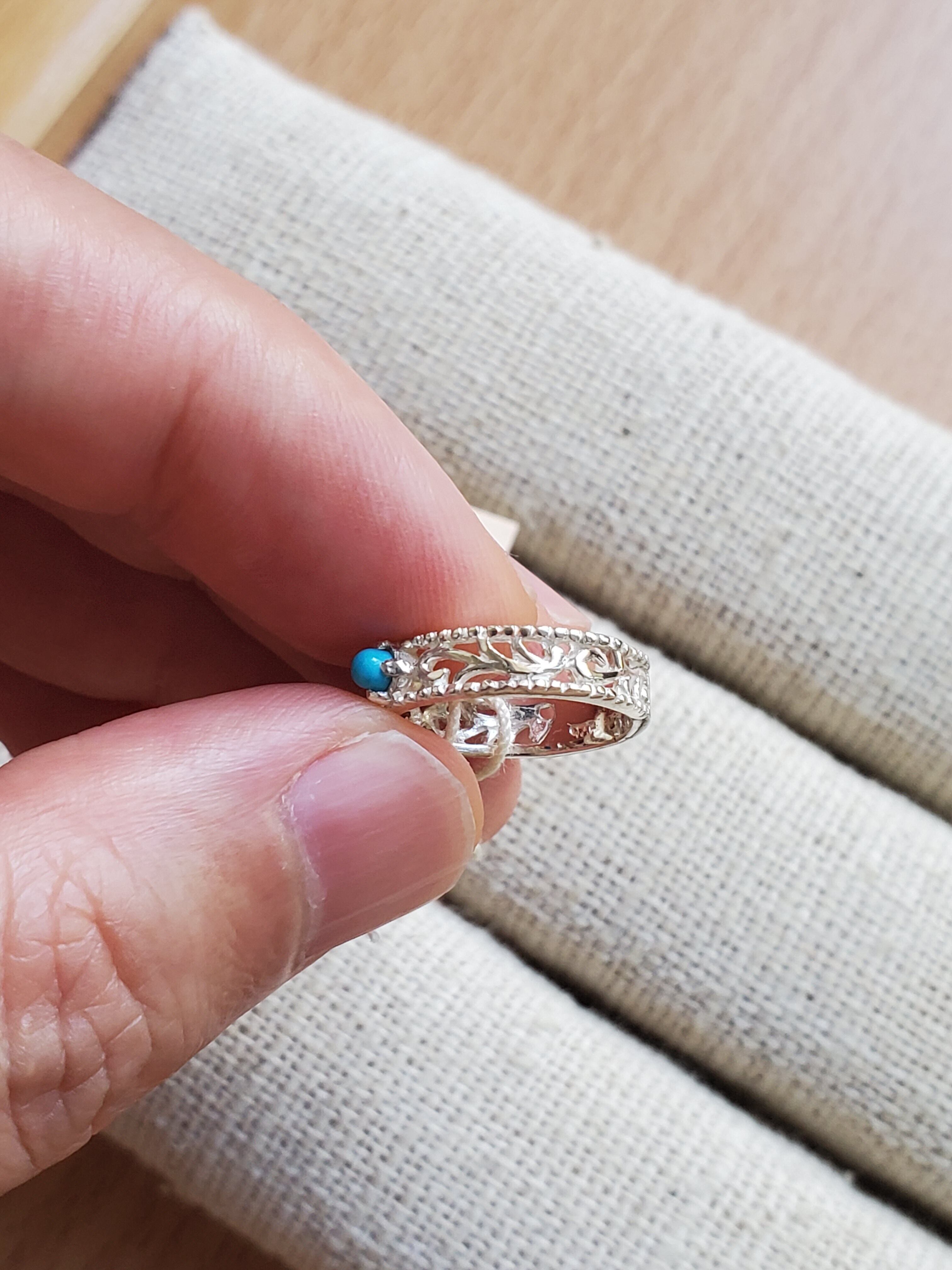 ターコイズ925silver透かし彫りリング