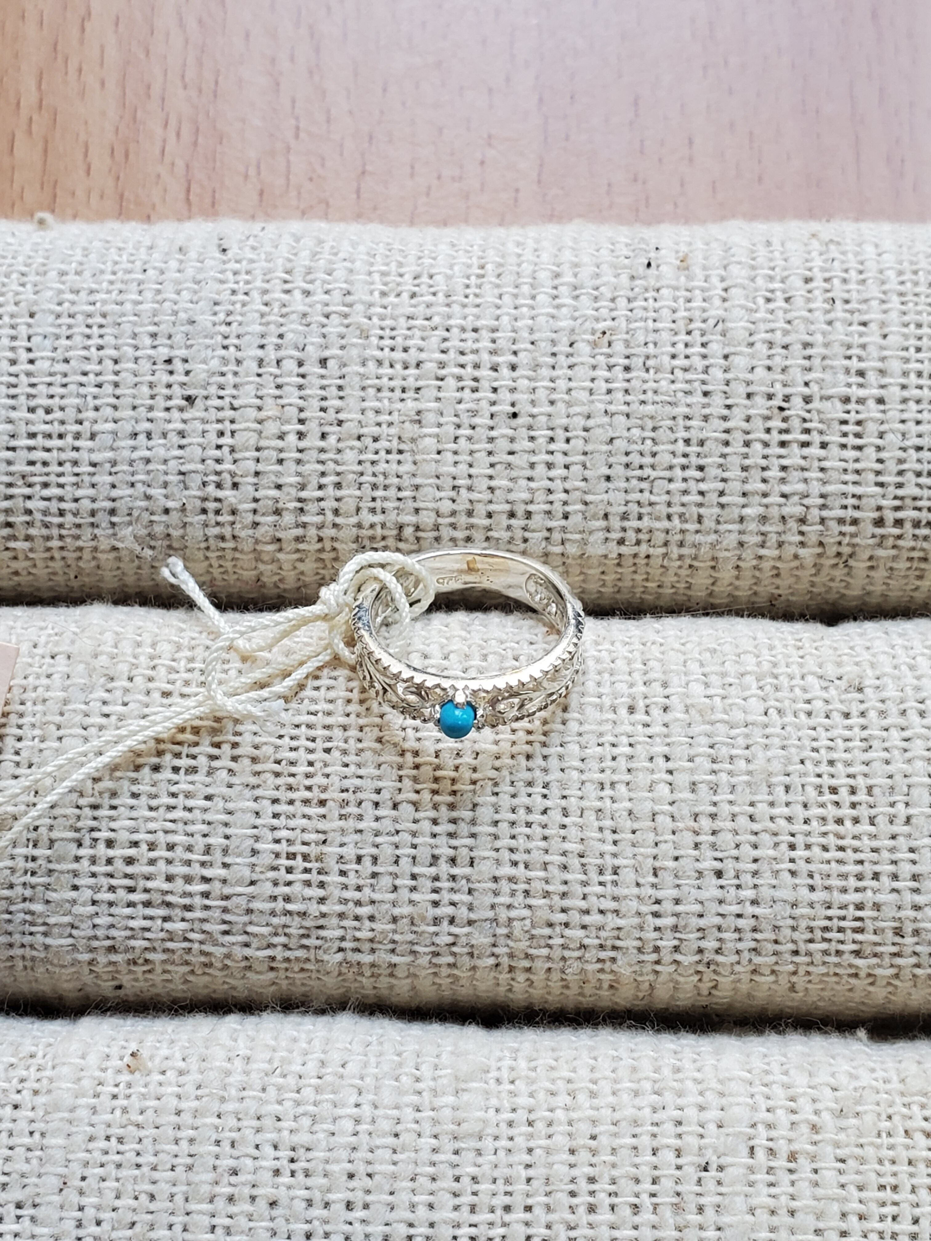 ターコイズの925silver透かし彫りリング 5号 送料無料