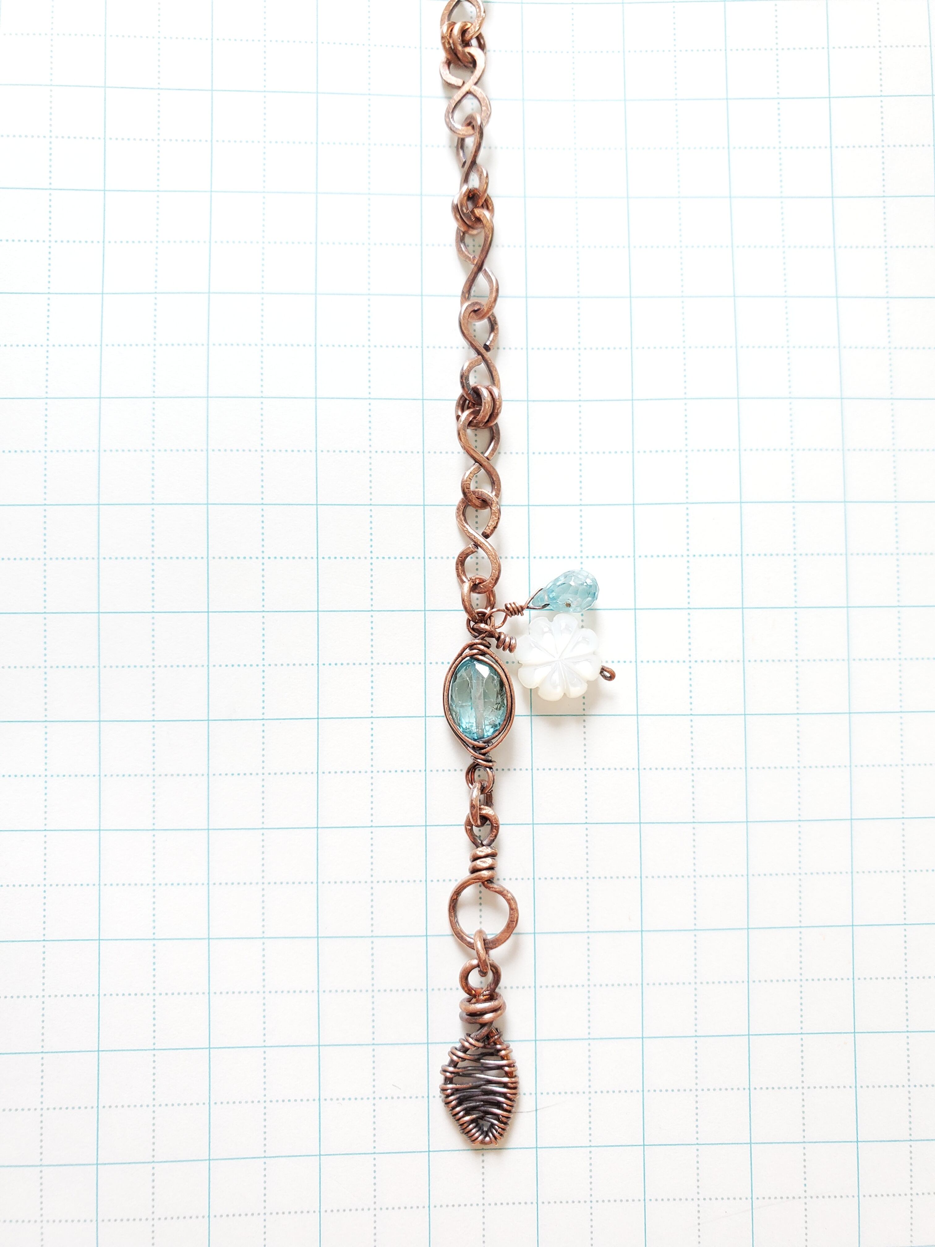 銅線を叩いたり燻したりしてアンティーク風に仕上げました。