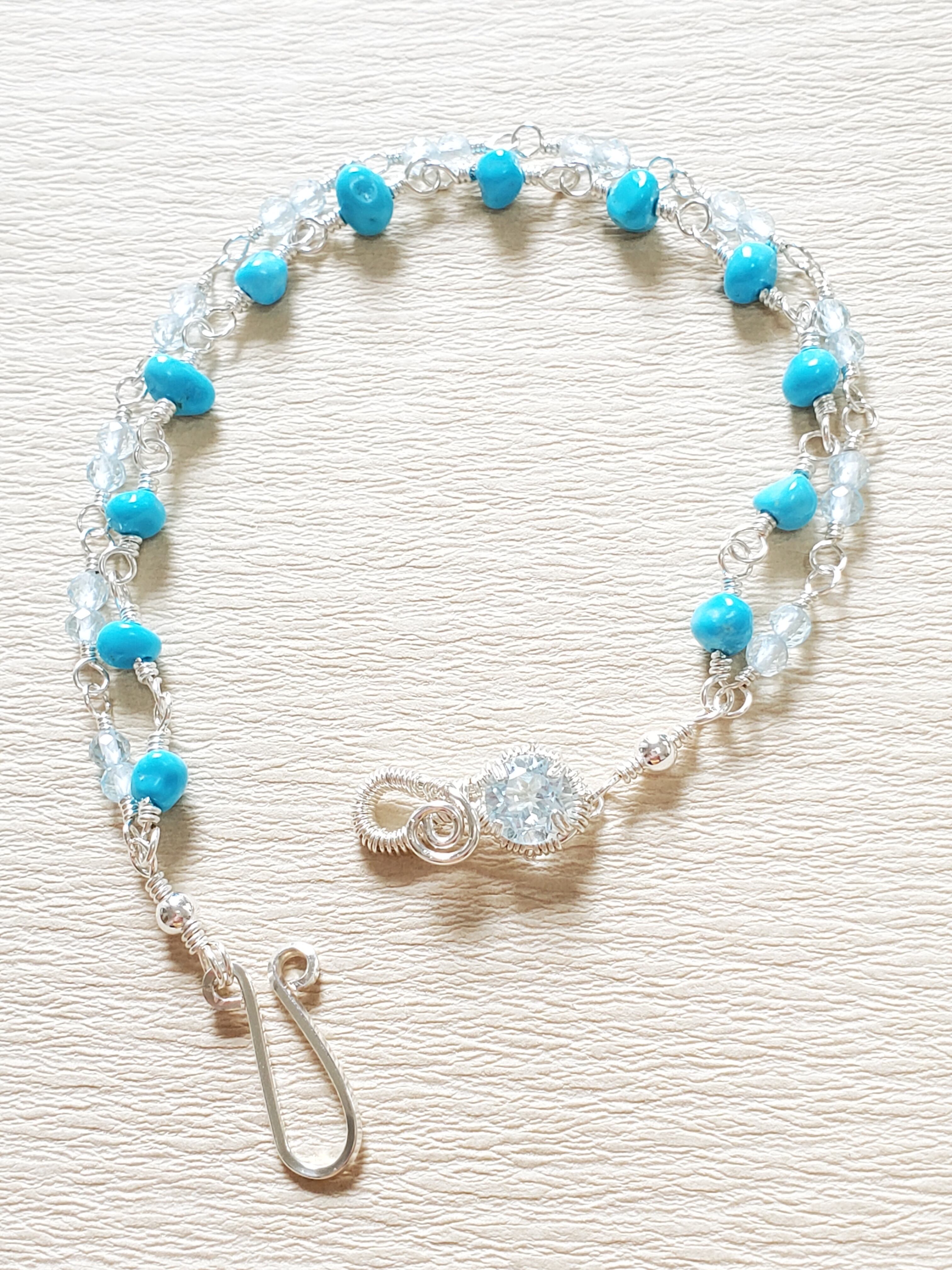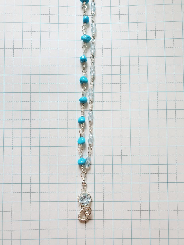 【使用素材】 ☆ブルートパーズ ☆ターコイズ(スリーピングビューティー) ☆シルバー925フィルドワイヤー