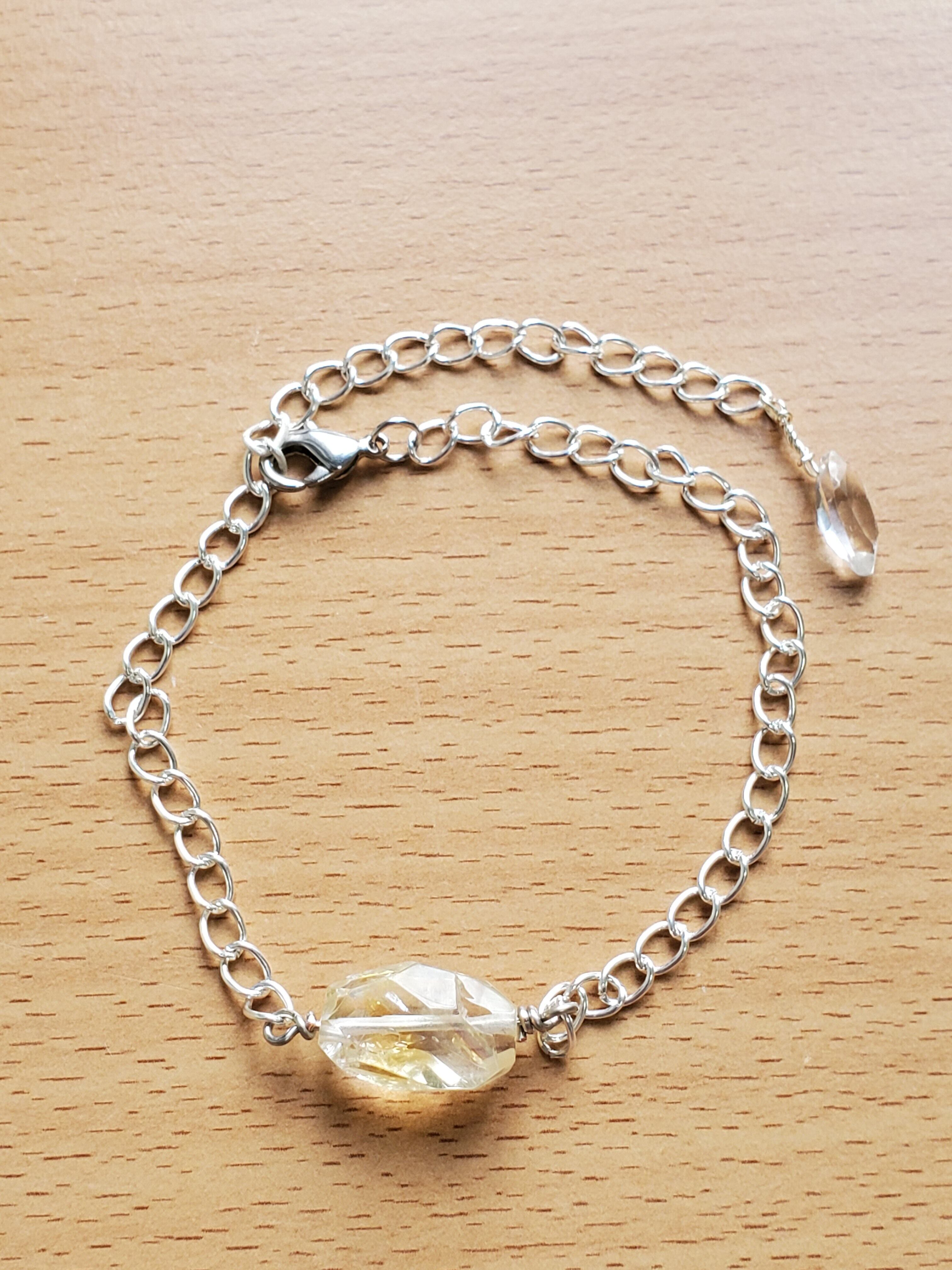 シトリン 水晶 合金パーツ アーティスティックワイヤー チェーンの長さが最大24センチあるため、ブレスレットにもアンクレットにも使える優れものです。 1粒のシトリンがキレイに映えるよう作ってみました。 よろしくお願いいたしますm(_ _)m 定形外郵便 送料無料