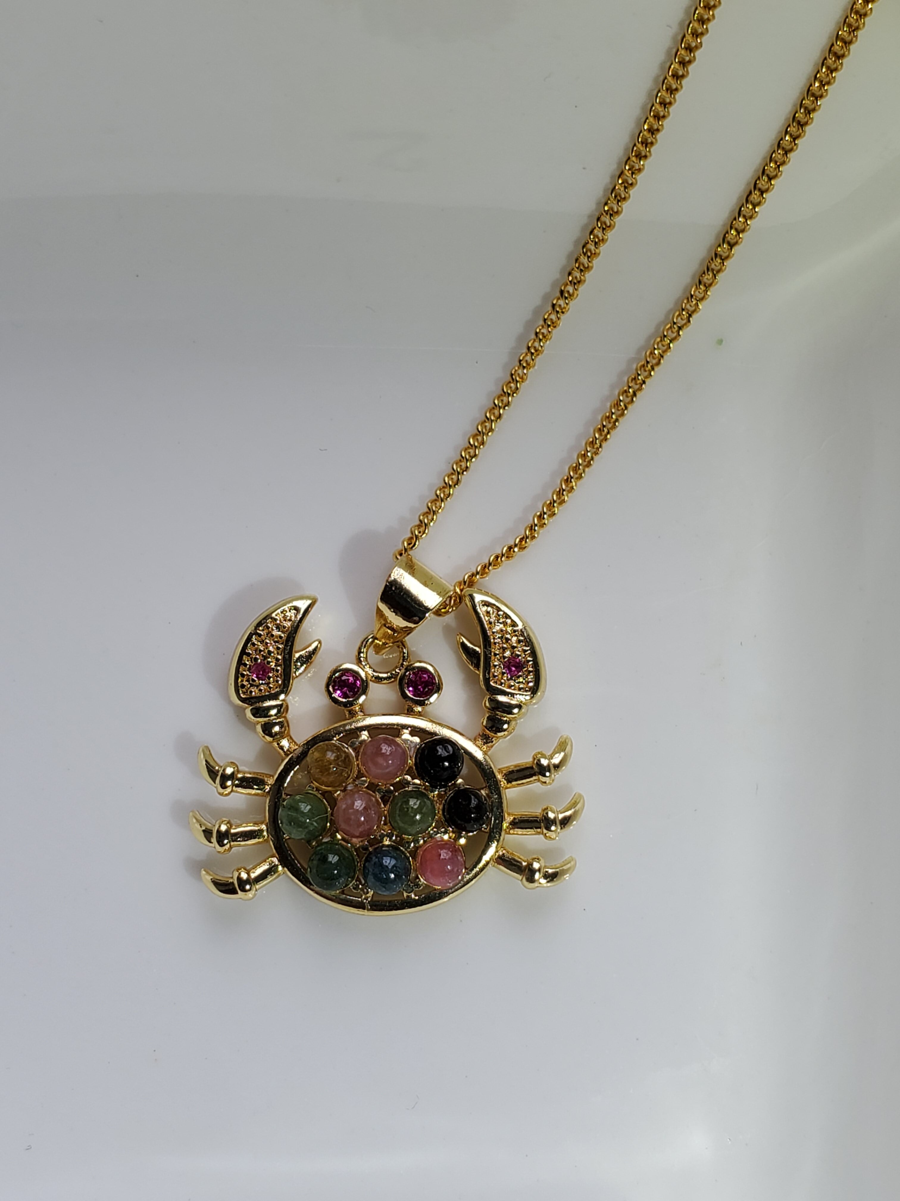 トルマリン 珍しいカニさんネックレス、この夏にもいいですね! 合金パーツ 合金チェーン 長さ約40センチ+アジャスター5センチ 国内のデザイナー様に作っていただきました。 よろしくお願いいたしますm(_ _)m 定形外郵便 送料無料