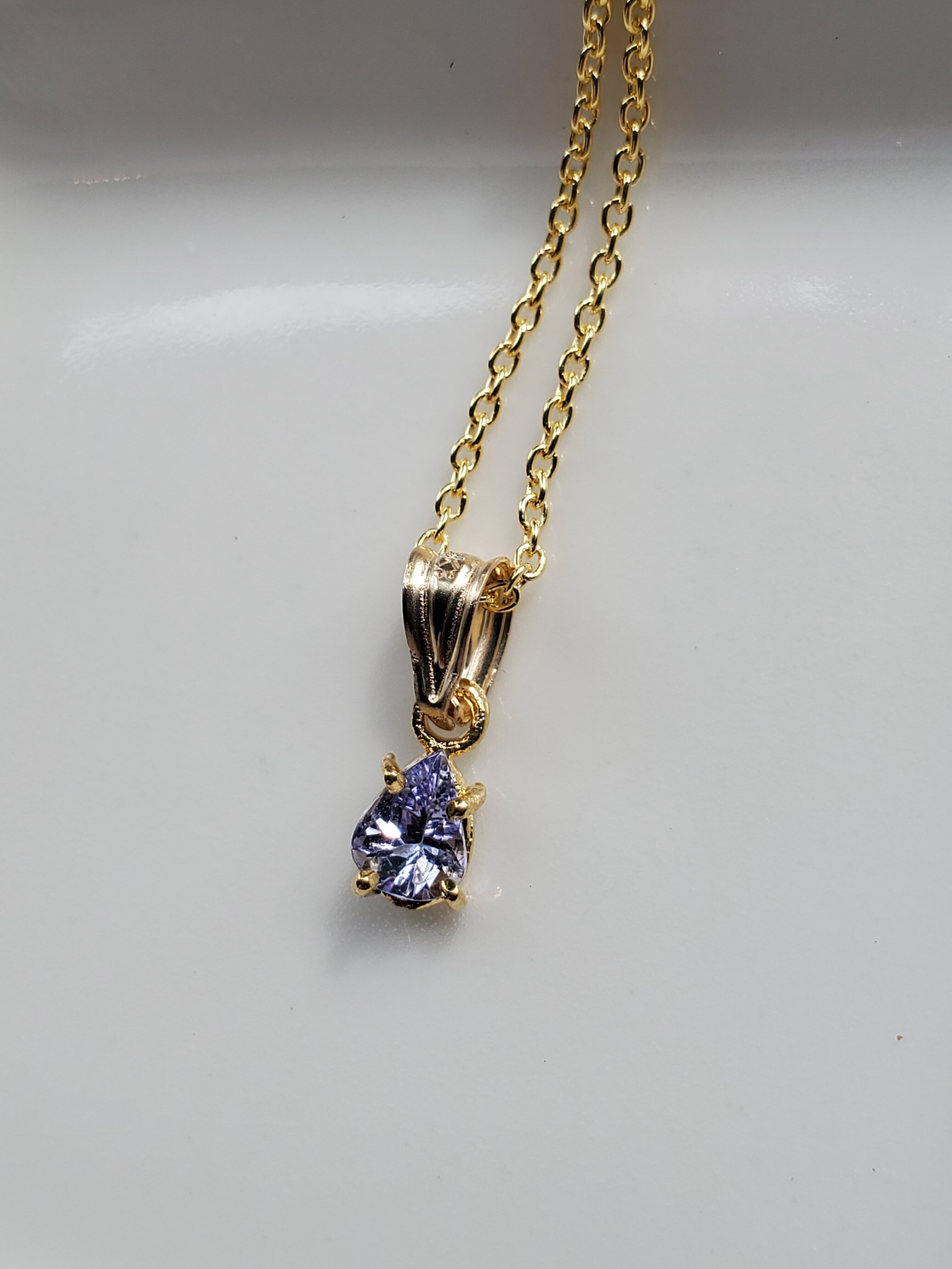 宝石質タンザナイト 素材はチェーンも18KGPで38センチ、バチカンは14KGF シンプルに石が輝くよう作ってみました。なんでも合わせやすいと思います。 よろしくお願いいたしますm(_ _)m 定形外郵便 送料無料