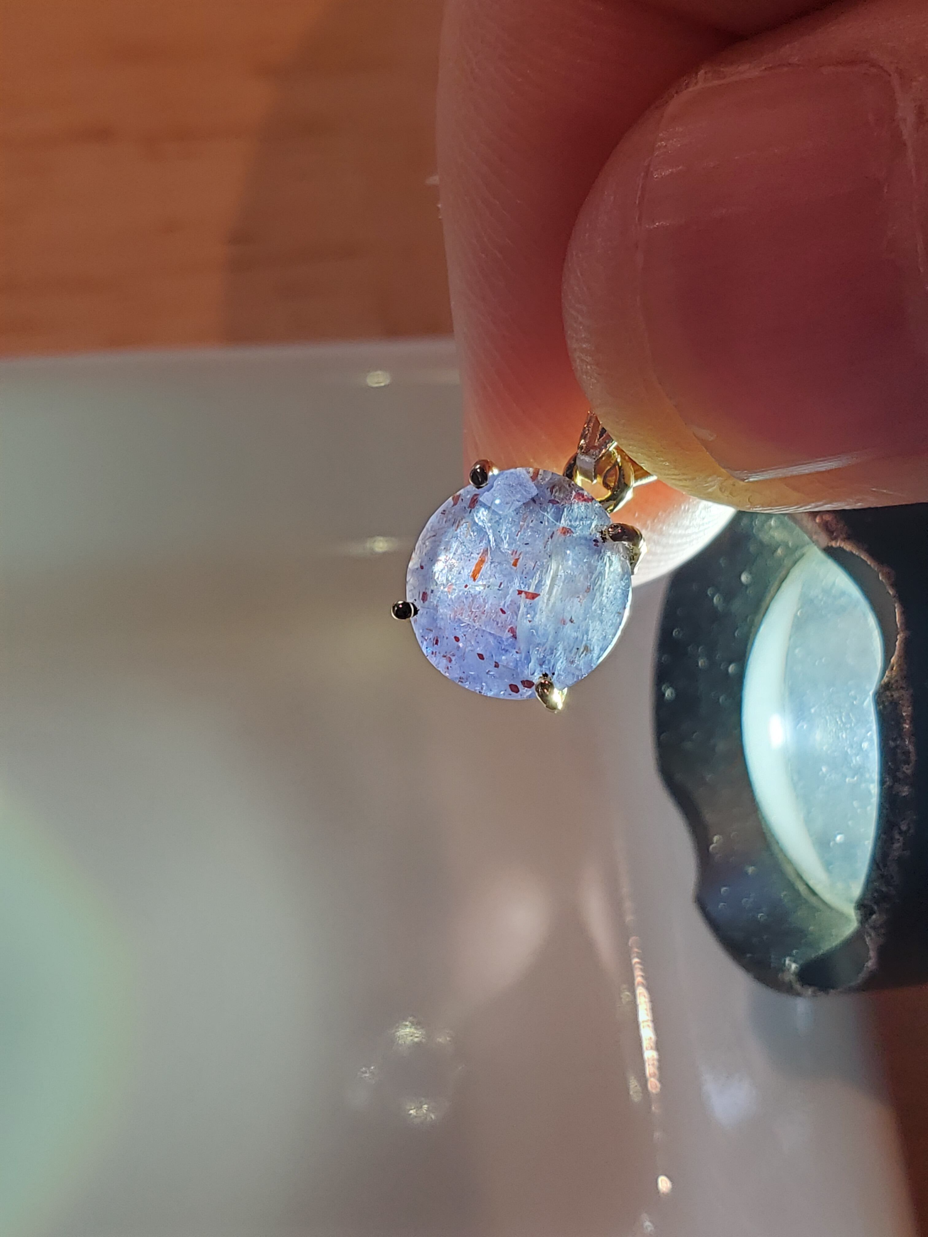 個性のあるブラットショットアイオライトをシンプルに作りました。とても、表情豊かな石です!