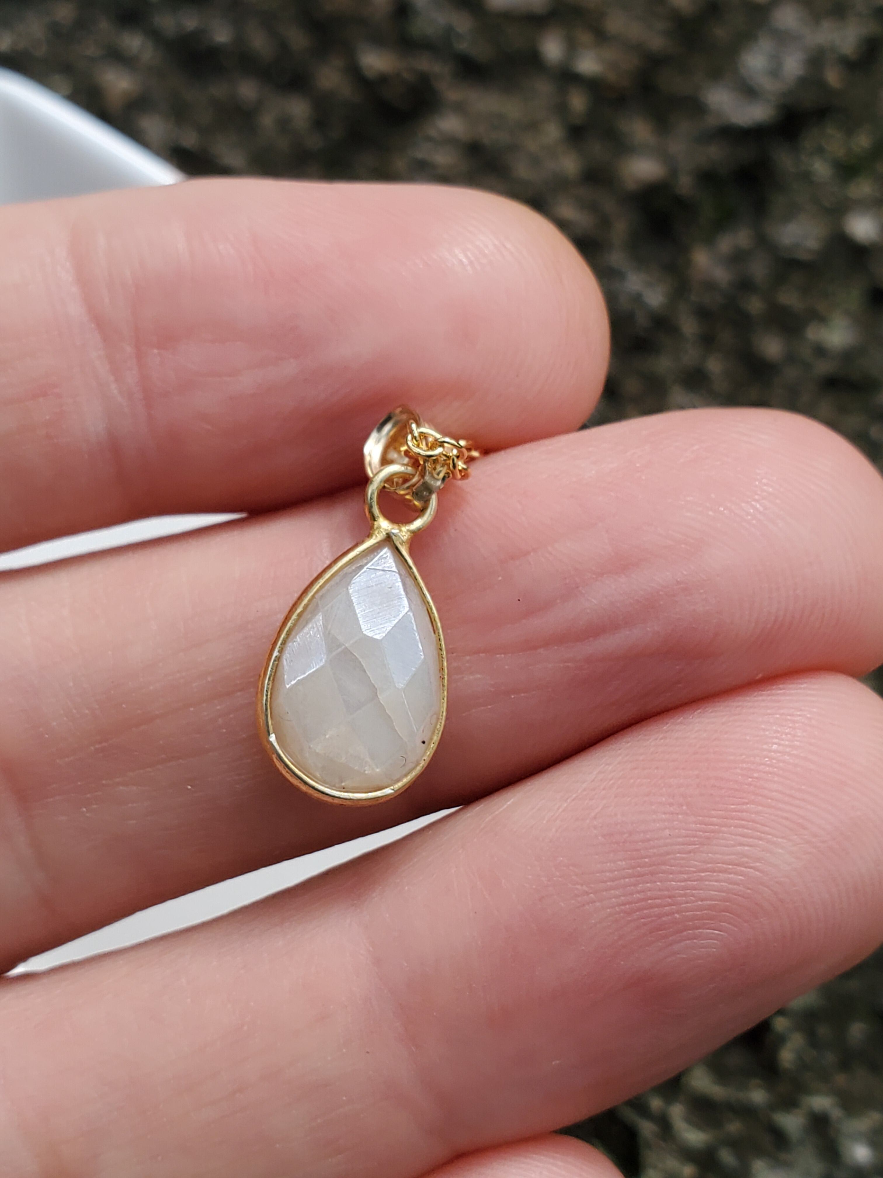 ムーンストーン 18KGP バチカンは14KGF チェーンは16KGPで40センチ、アジャスター5センチ 石が綺麗にみえるように、シンプルに作りました。秋冬に使えそうなホワイトブラウンのような色です。 よろしくお願いいたしますm(_ _)m
