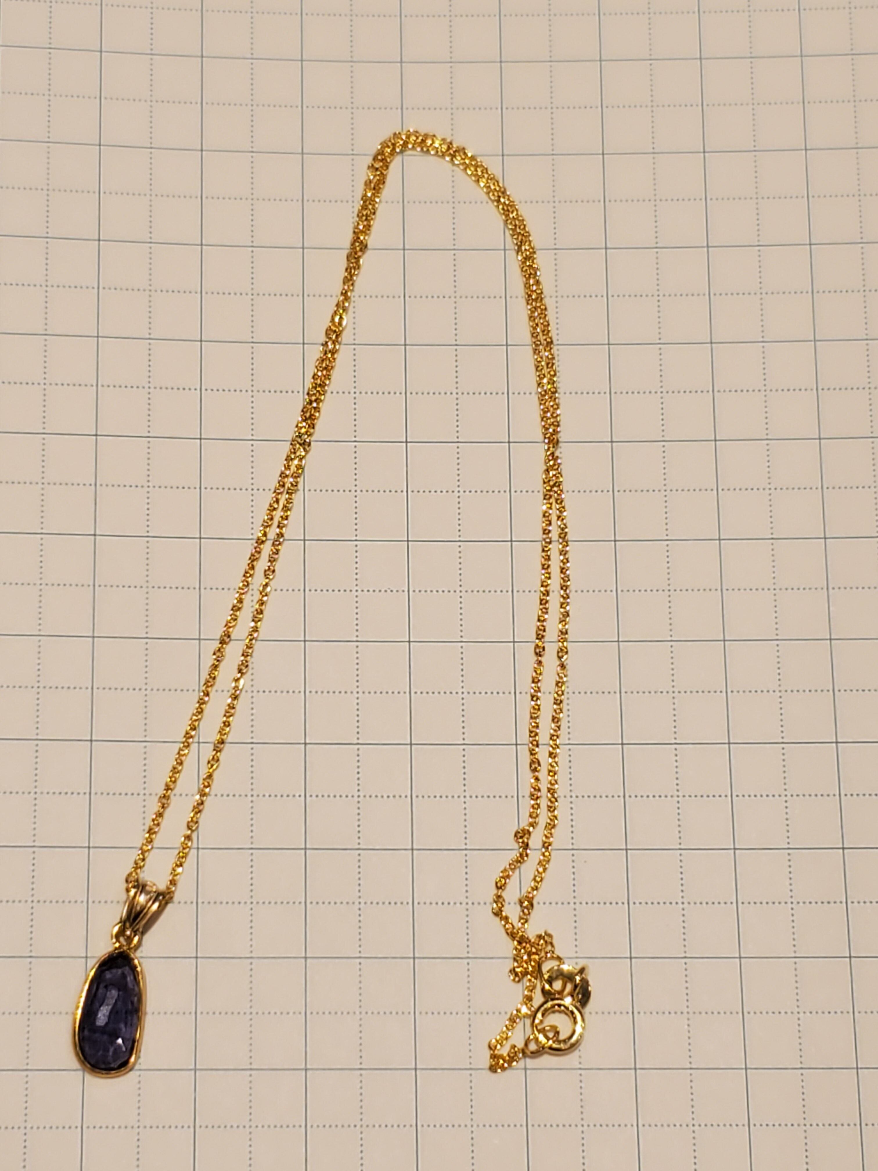 アイオライト (ローズカット) 素材 チェーンも枠も18KGP製 (925silverに18Kをコーティングした高素材です) 珍しいカットのアイオライトをシンプルに作りました。使いやすいと思います。 よろしくお願いいたしますm(_ _)m 定形外郵便 送料無料