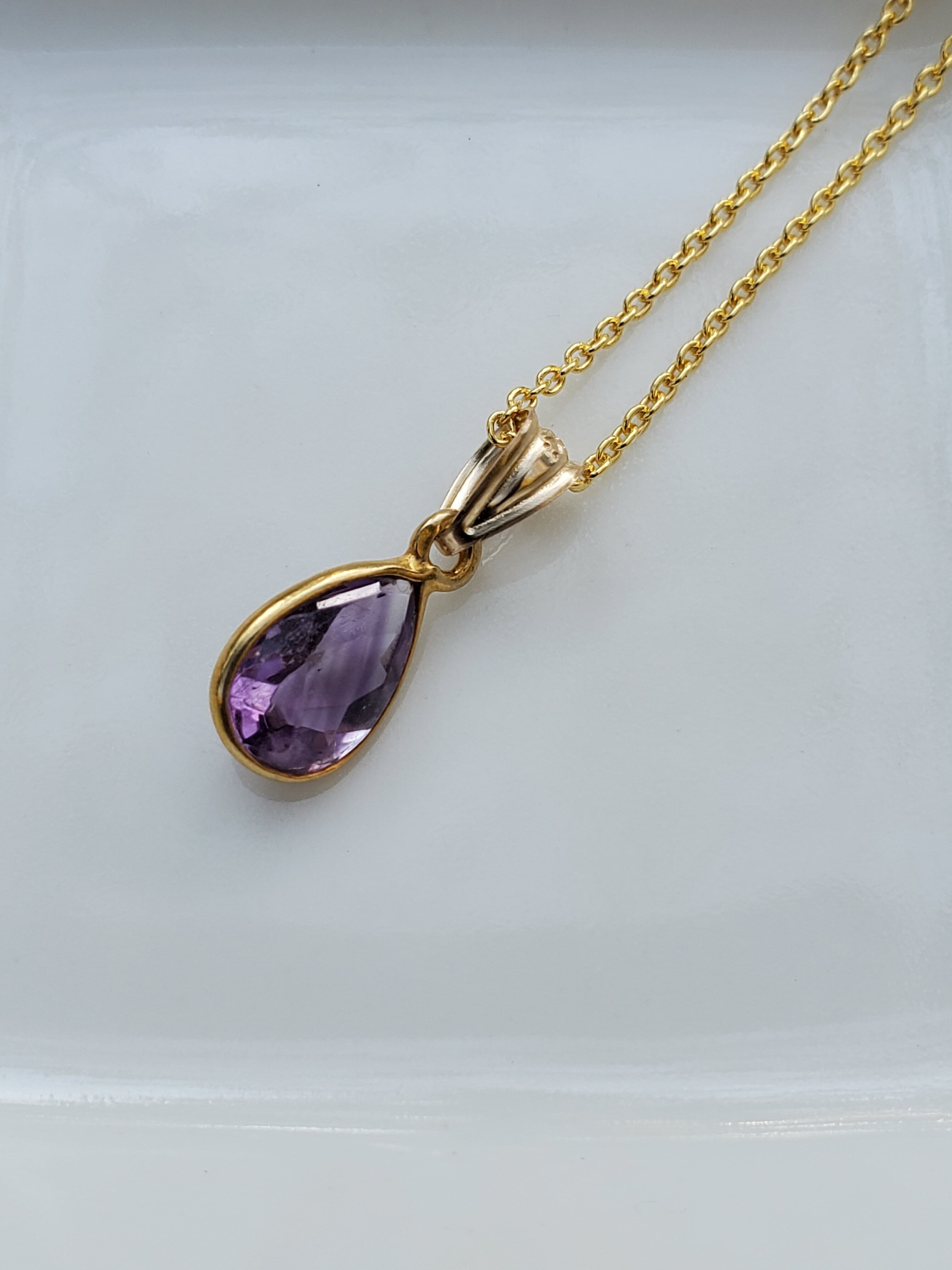 アメジスト18KGP製ネックレス チェーン40センチ 石が綺麗にみえるよう、シンプルに作りました。 よろしくお願いいたしますm(_ _)m 定形外郵便 送料無料