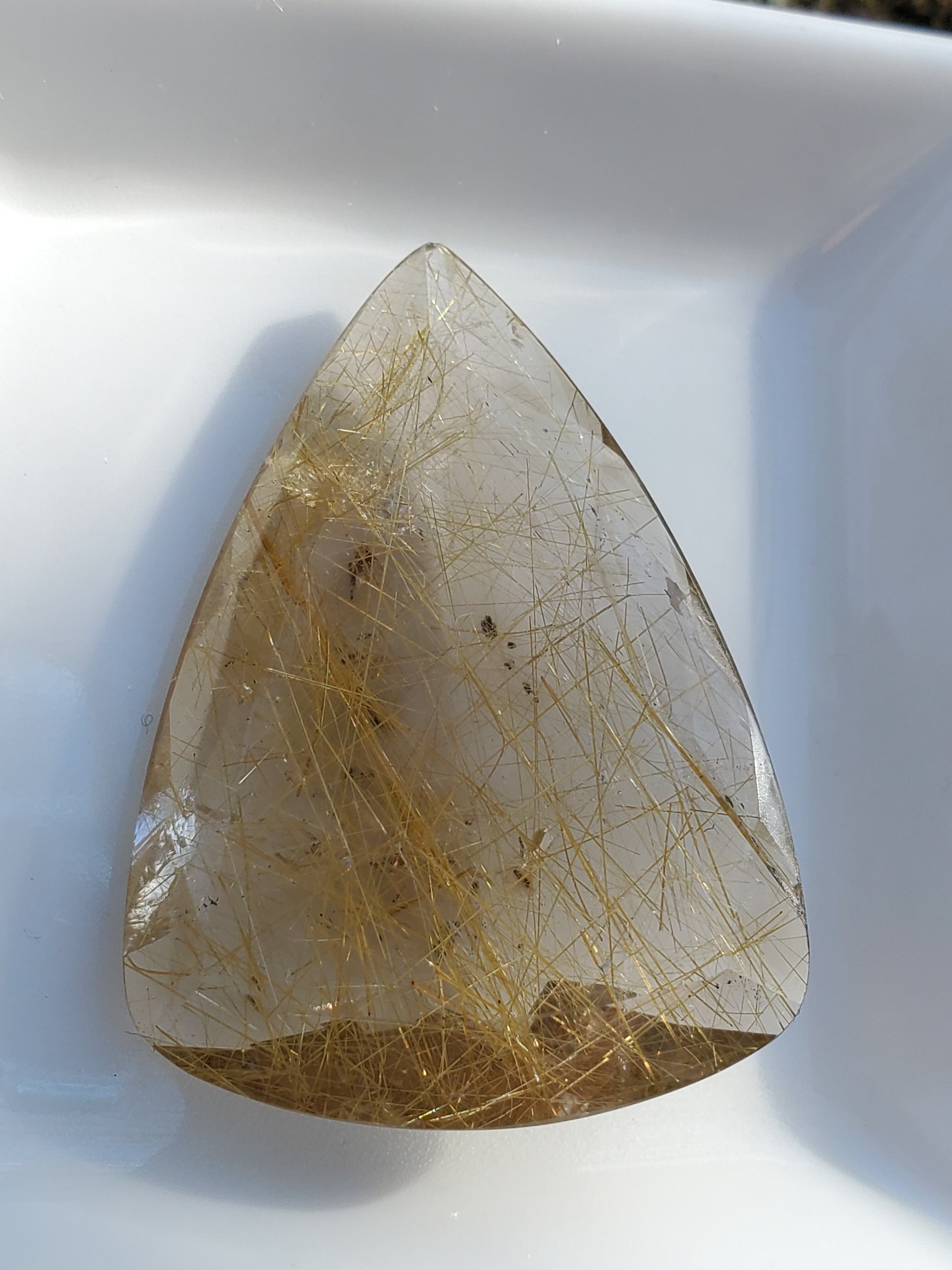 ルチルクォーツのルースです。 たまたま仕入先から入手した、特殊なカットで高品質な石です。 でも、お安くお譲りさせていただきます。 よろしくお願いいたしますm(_ _)m 定形外郵便 送料無料