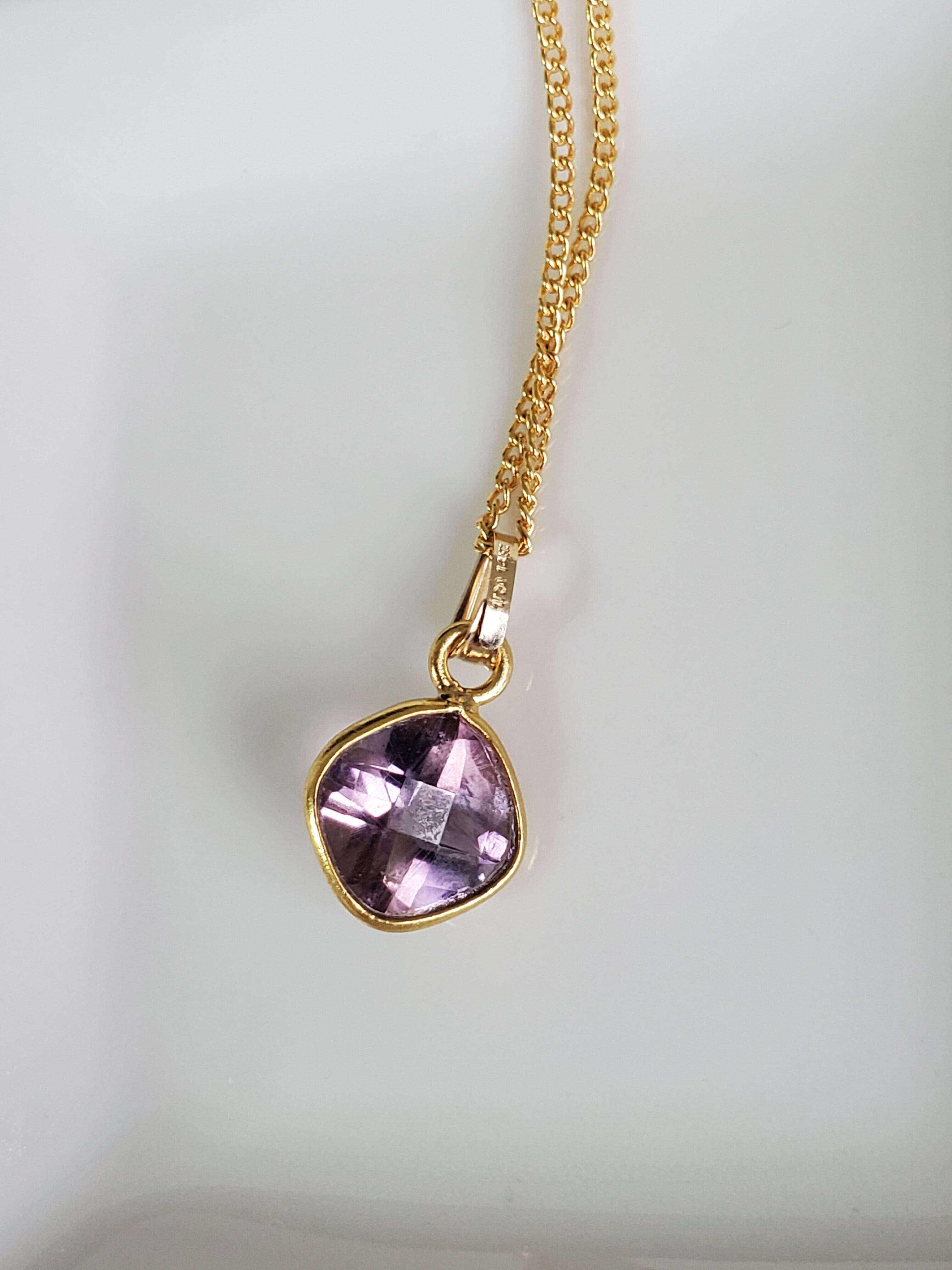 天然石 ピンクアメジスト (ダイヤカット) 素材 トップ18KGP チェーン16KGP 40cm 定形外郵便送料無料 サイズは画像参照 #ピンクアメジスト #ネックレス #天然石 #天然石アクセサリー #ハンドメイド #ハンドメイドアクセサリー