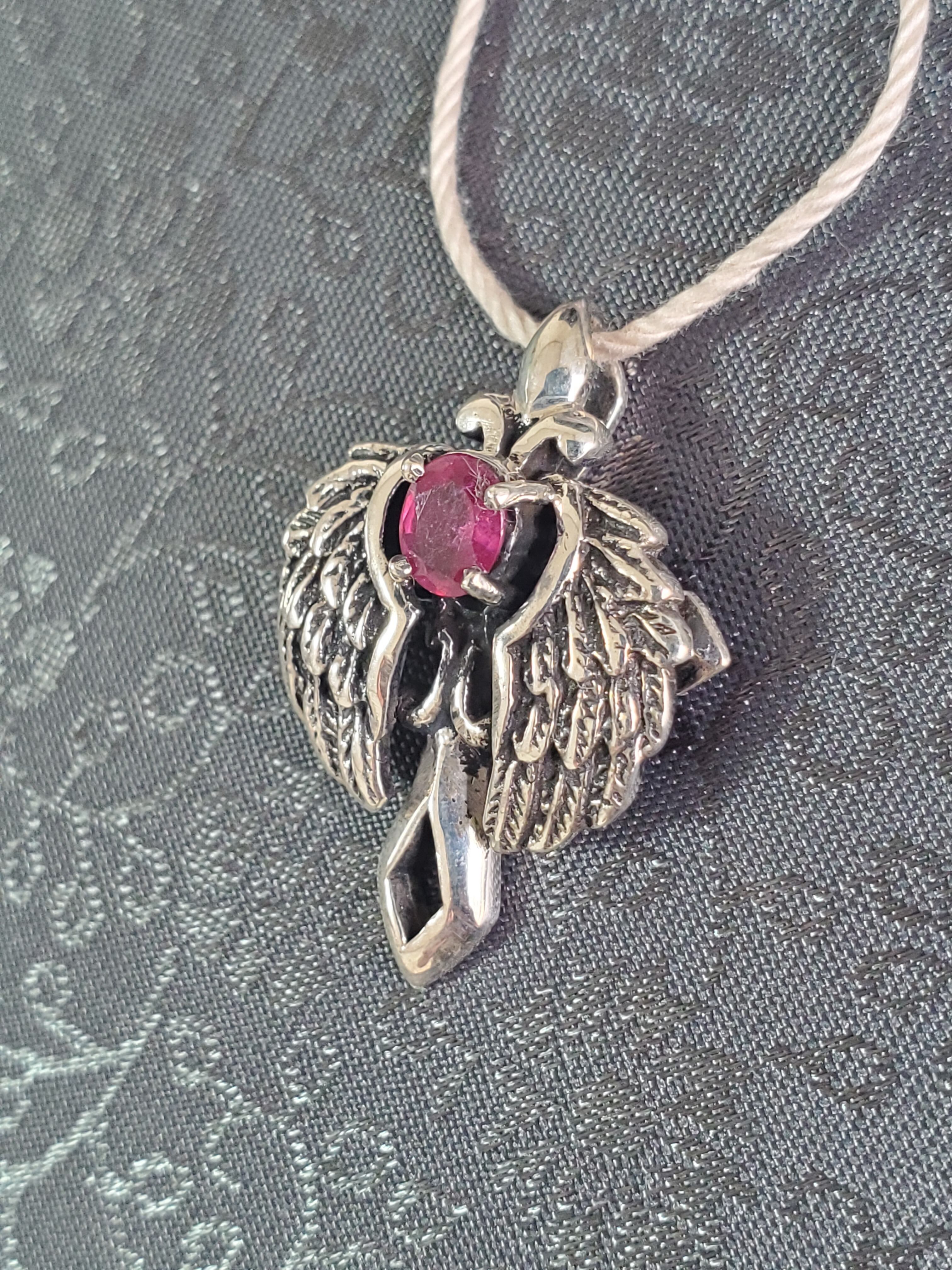 天然石 羽根×クロス×ルビー 0.48ct 素材 925silver ペンダントトップのみ (こちらにはチェーンは付いていません) サイズは画像参照 定形外郵便 #ルビー #ネックレス #天然石 #天然石アクセサリー #ハンドメイド #ハンドメイドアクセサリー