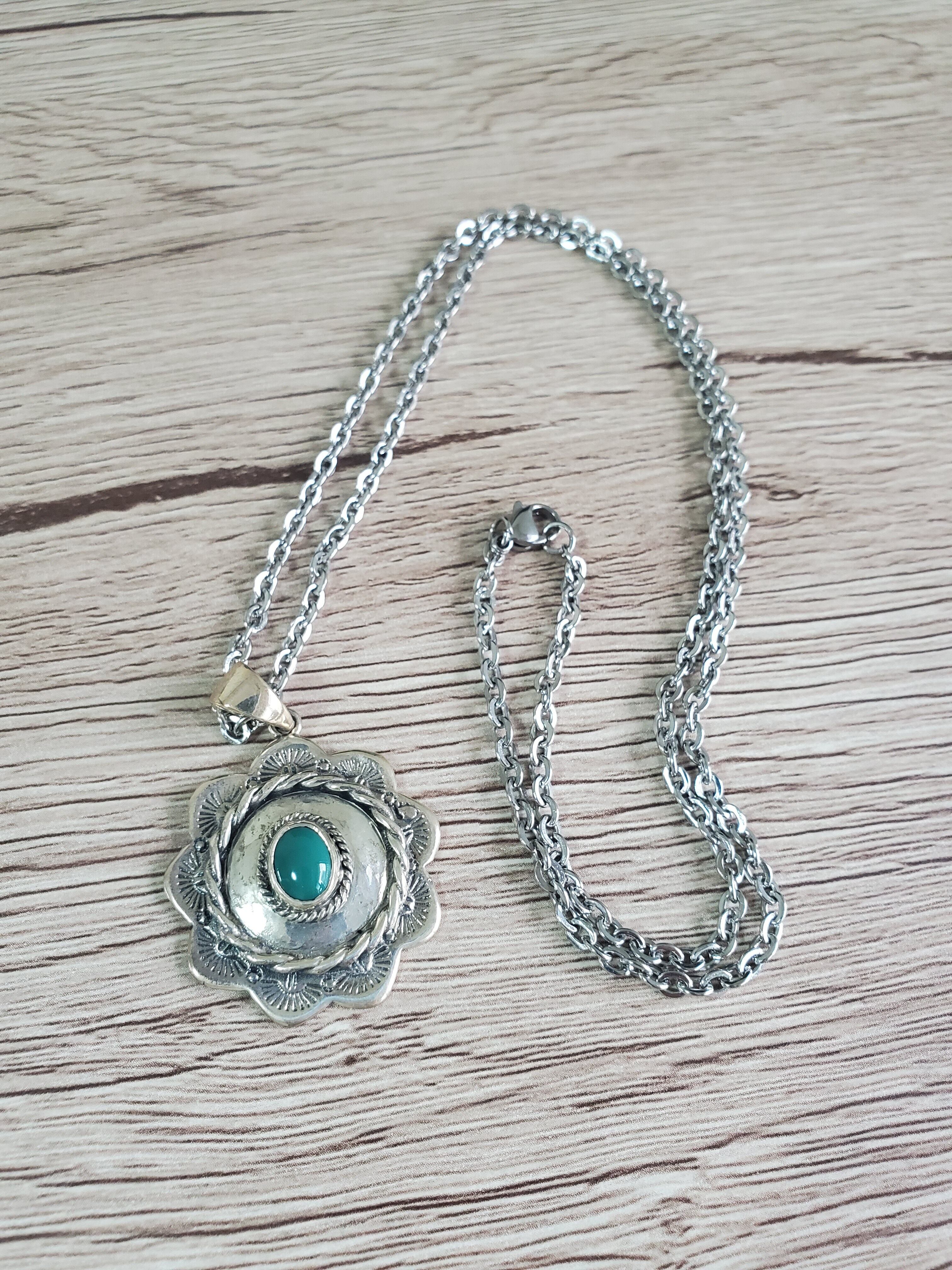 天然石 ターコイズ(太陽) 素材 925silver ステンレスチェーン 60cm サイズは画像参照 定形外郵便 #ターコイズ #ネックレス #天然石 #天然石アクセサリー #ハンドメイド #ハンドメイドアクセサリー