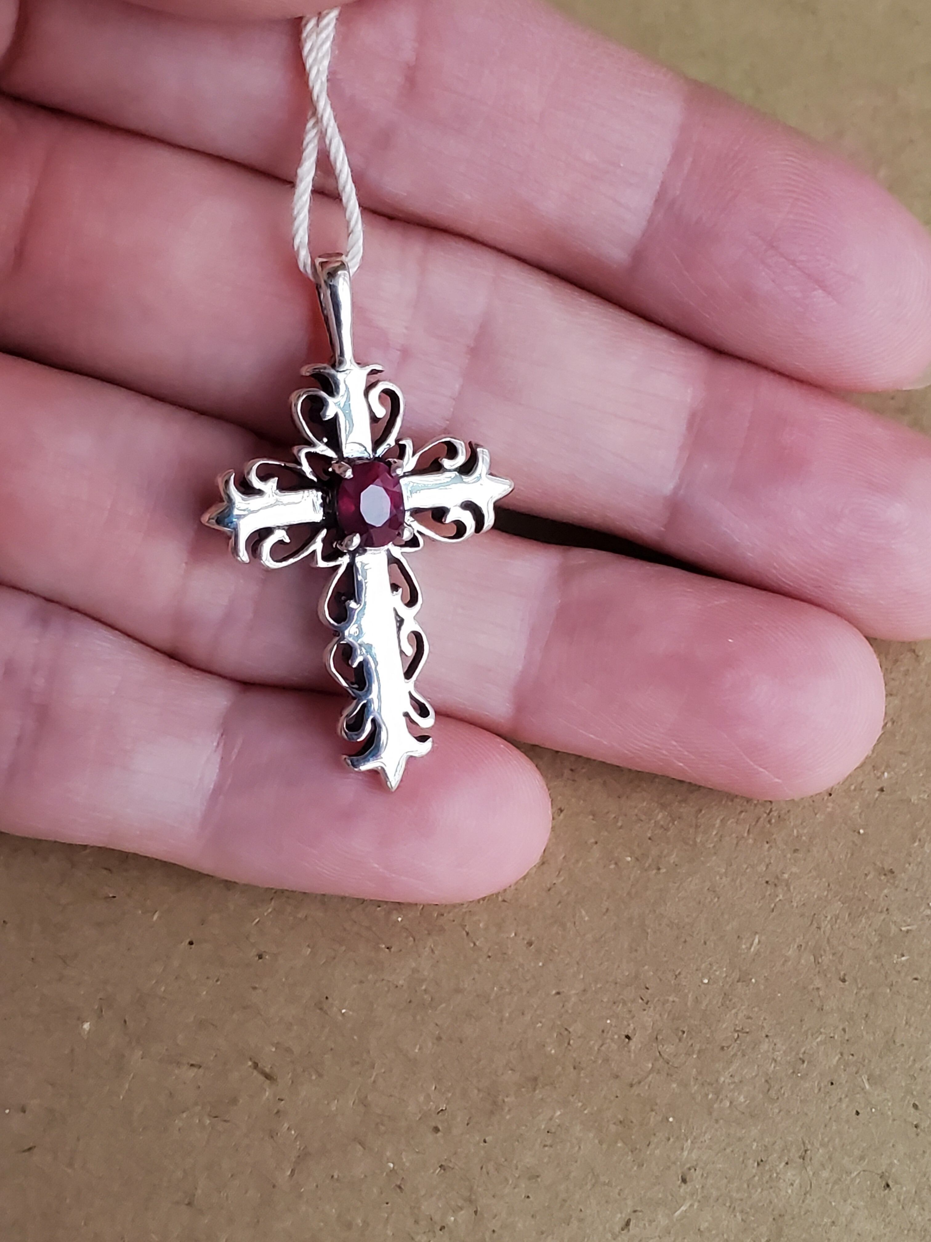 ルビーペンダントトップ クロスモチーフ 天然石アクセサリー