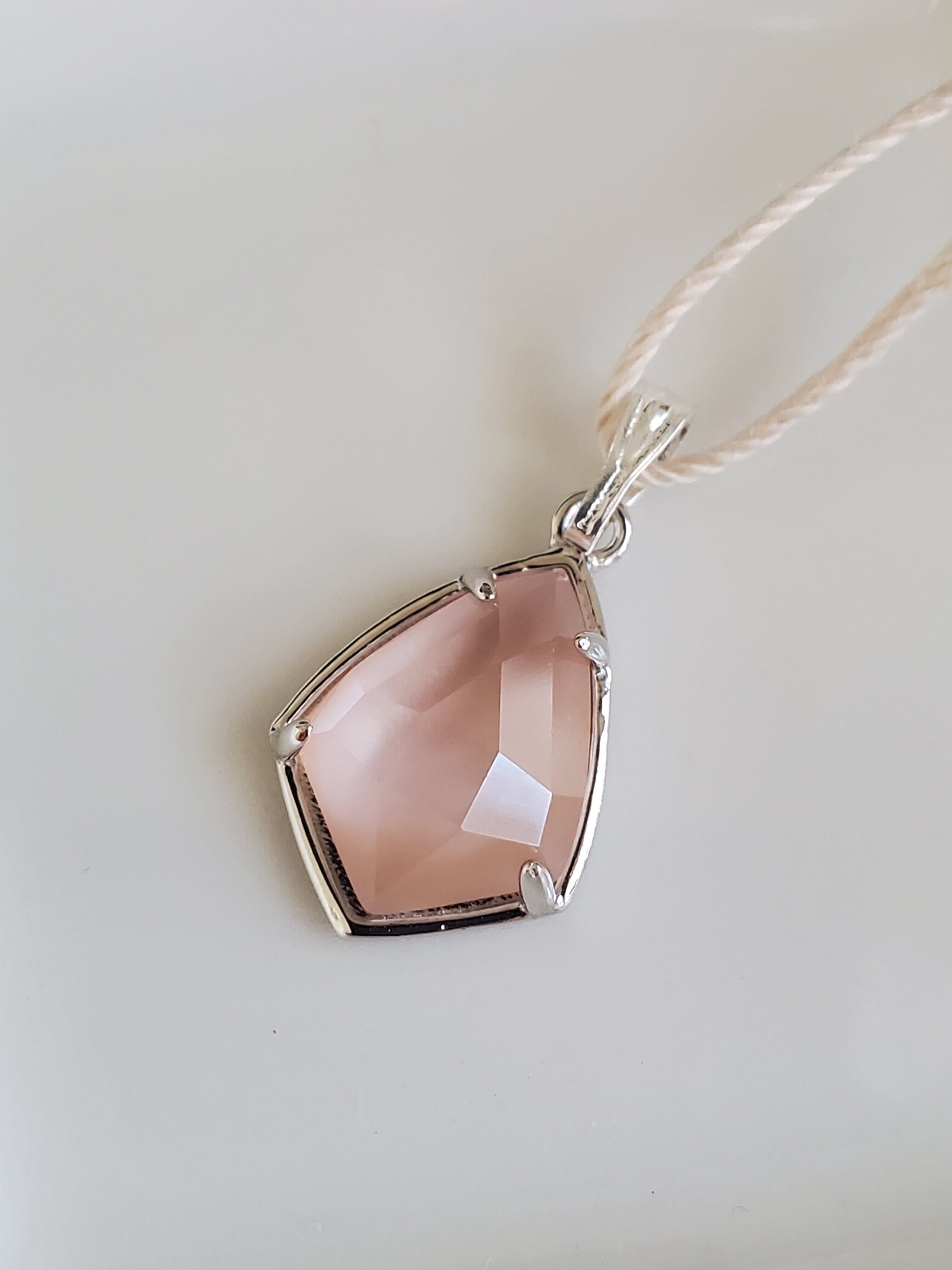 天然石 ピンクシェル 素材 925silver ペンダントトップ サイズは画像参照 淡いピンク色がかわいい子です カット水晶なので、どの方向から見てもキラキラしています #ピンクシェル #ネックレス #天然石 #天然石アクセサリー #天然水晶 #クォーツ #ハンドメイド #ハンドメイドアクセサリー