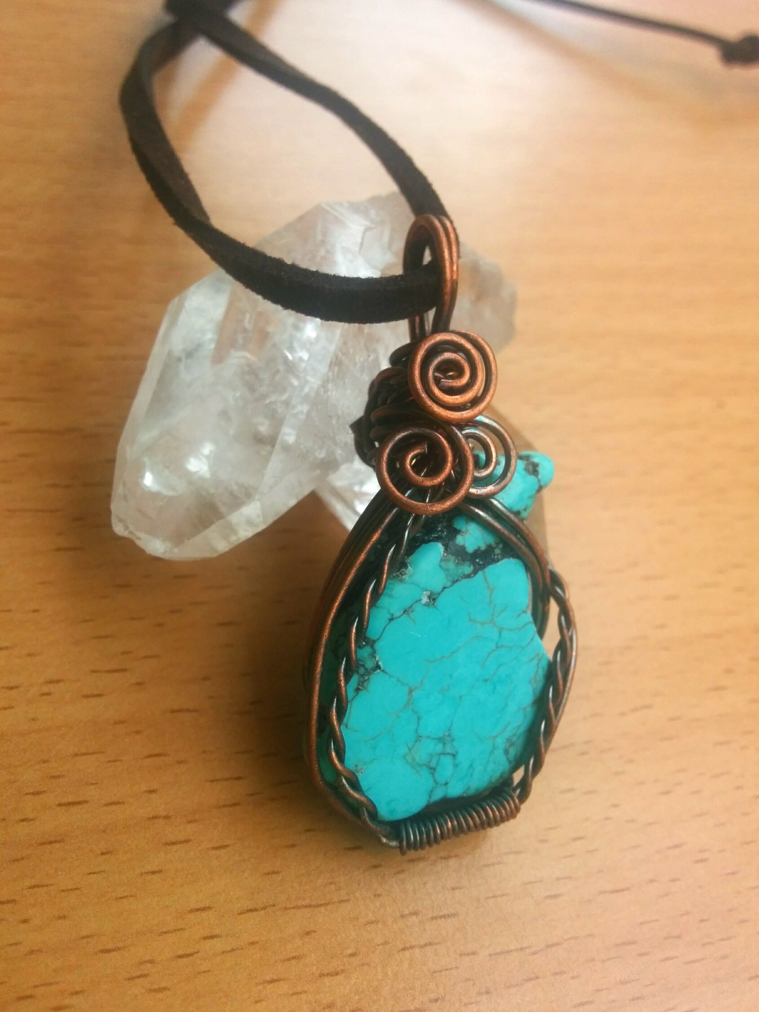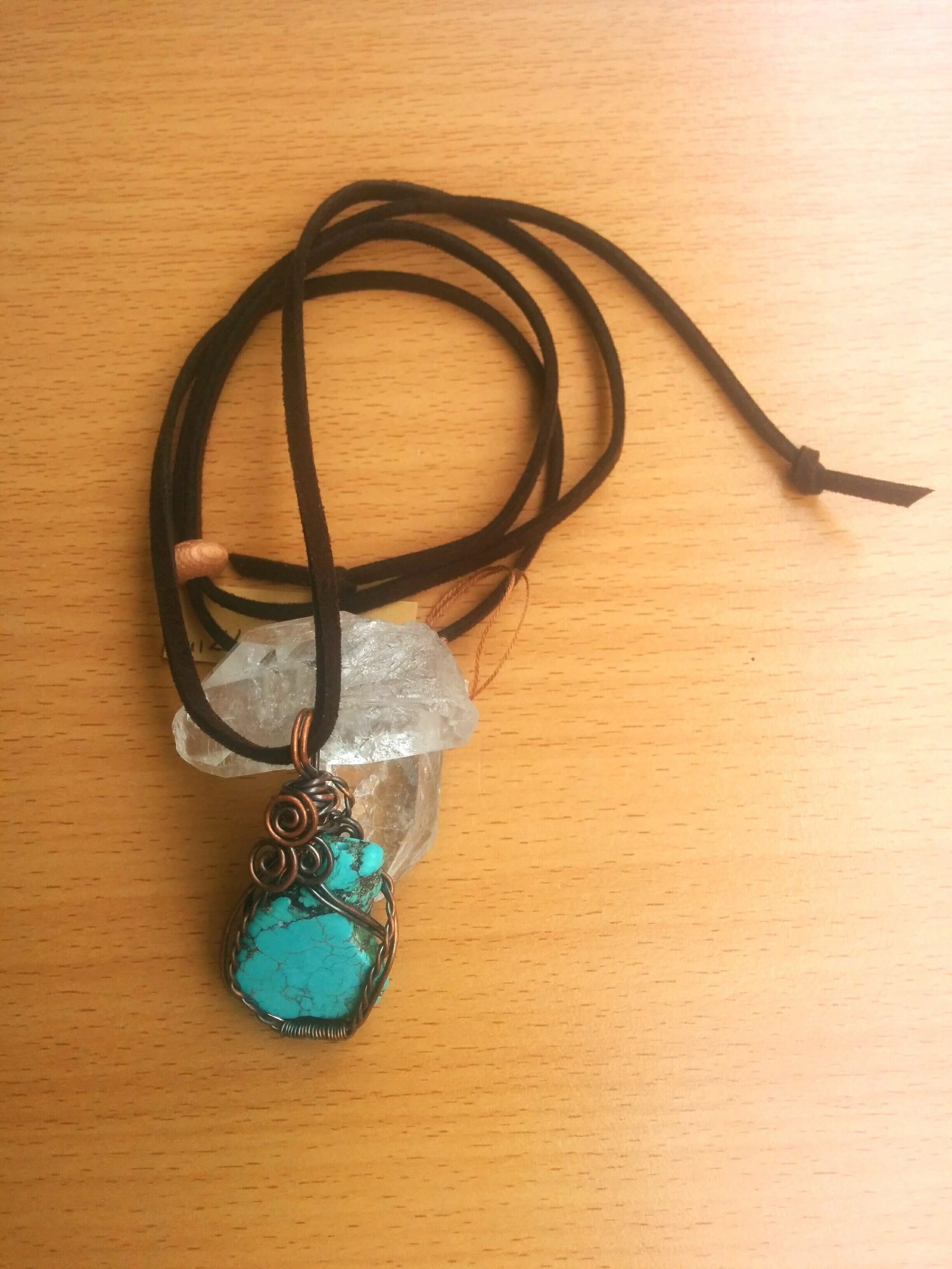 「マグネサイトターコイズ」の革紐ネックレス~送料無料~